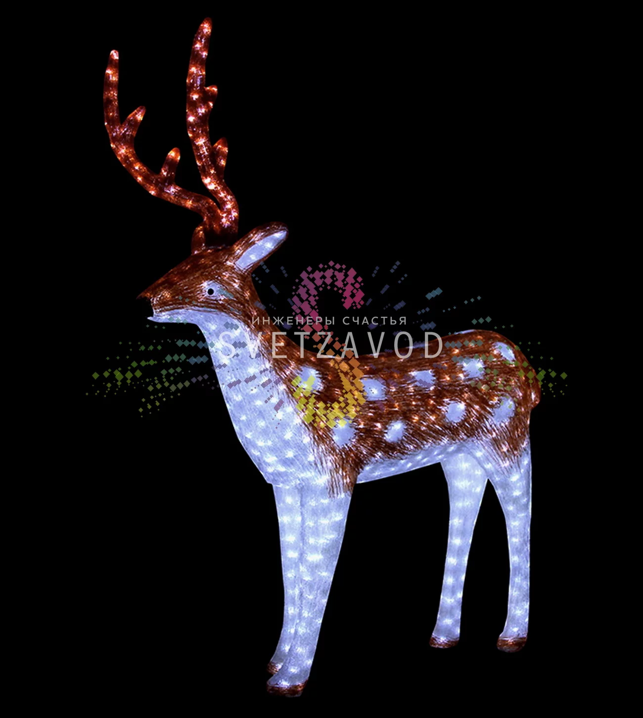 Ищете эффектный и долговечный элемент декора, который будет работать круглый год? Акриловая фигура 3D Олень папа коричневый решает задачу создания статусного и запоминающегося оформления. Это не просто фигурка с подсветкой, а полноценный световой арт-объект, который преобразит ваш сад, фасад или торговую зону. Если вы хотите купить акриловые фигуры для создания атмосферы, этот олень с 3500 светодиодами станет отличным выбором.
