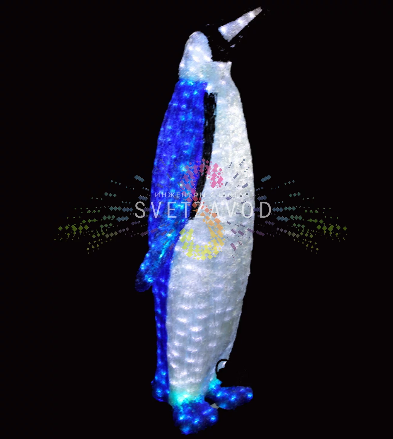 Объемное решение для праздника и бизнеса: Ищете, где купить акриловые фигуры для создания яркого акцента? Королевский пингвин — это готовое решение. Объемная фигурка с подсветкой на 1528 светодиодах создает эффект ледяной скульптуры днем и яркого 3D-свечения ночью. Это идеальный новогодний декор 3d и элемент круглогодичного оформления для улицы и помещений.