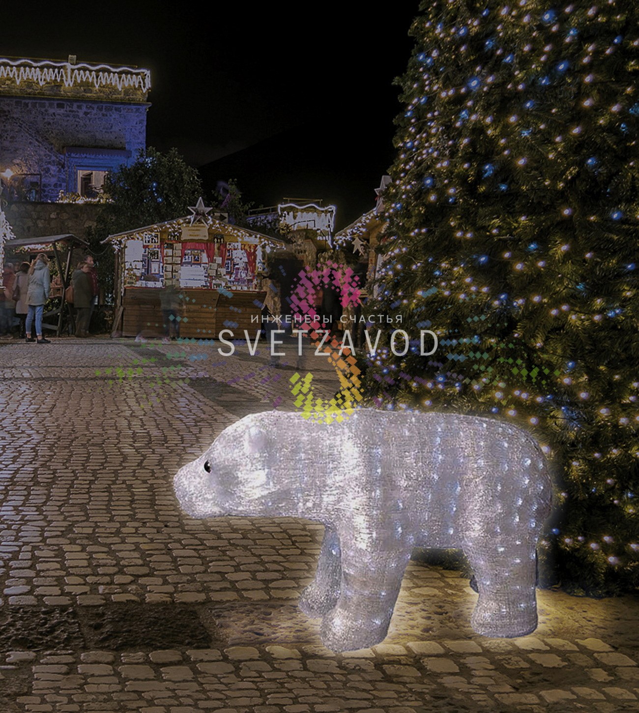 Инновационная 3D-технология: Объемная светодиодная фигура Полярный медведь создает эффект парящего в воздухе животного благодаря продуманной конструкции из прочного акрила и равномерному свечению 400 светодиодов. Идеальная детализация и реалистичность образа.