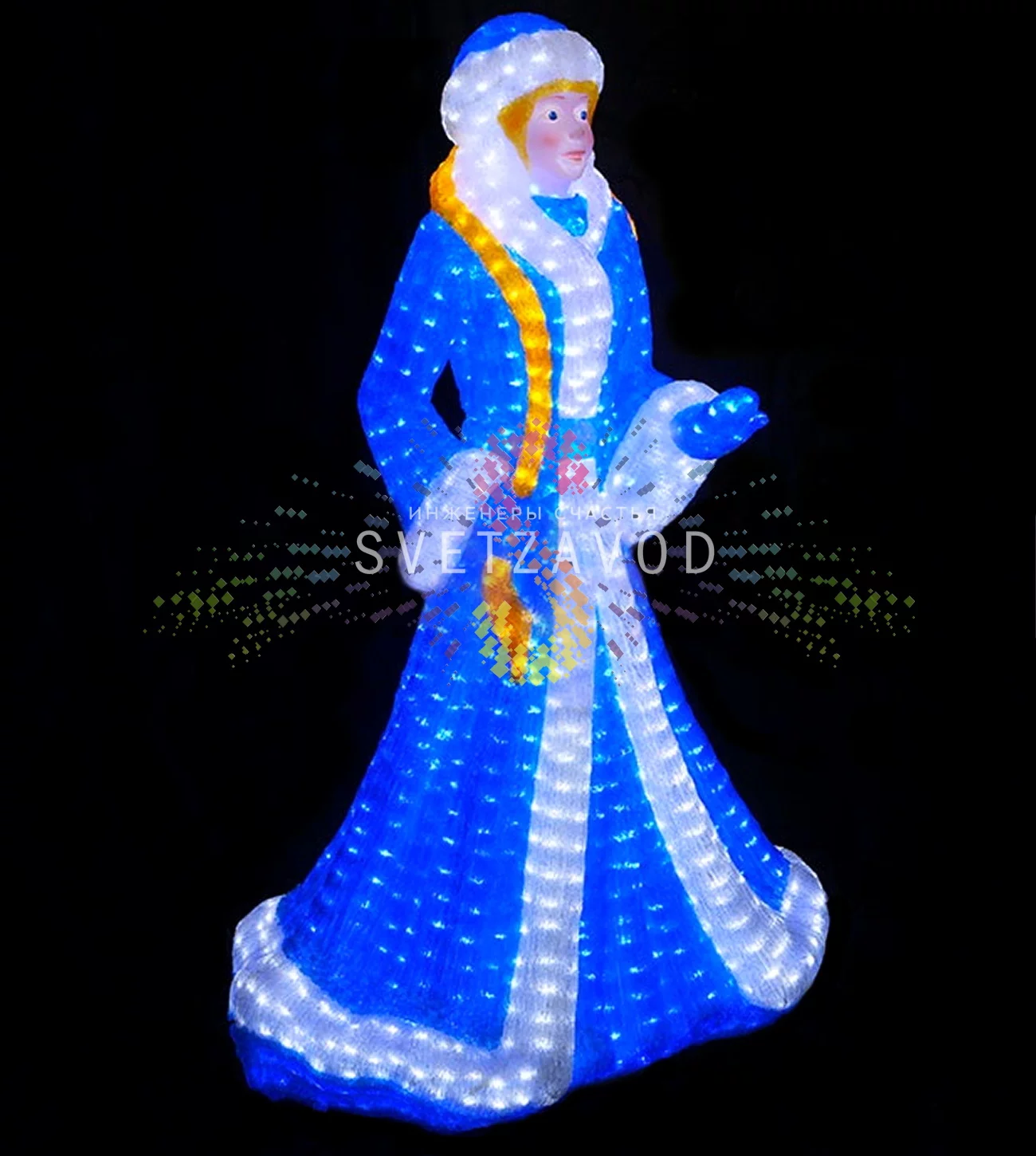 Ищете эффектный способ украсить территорию к праздникам? Акриловые фигуры 3D — это современное решение, которое мгновенно преображает пространство. Представленная модель «Снегурочка с косой» высотой 190 см с 5500 светодиодами создает яркую и запоминающуюся инсталляцию. Это готовый комплект, который включает блок питания с трансформатором, что позволяет быстро и безопасно организовать праздничное освещение на улице. Такая светящаяся фигурка станет центральным элементом новогоднего декора для торгового центра, городской площади или частного участка.