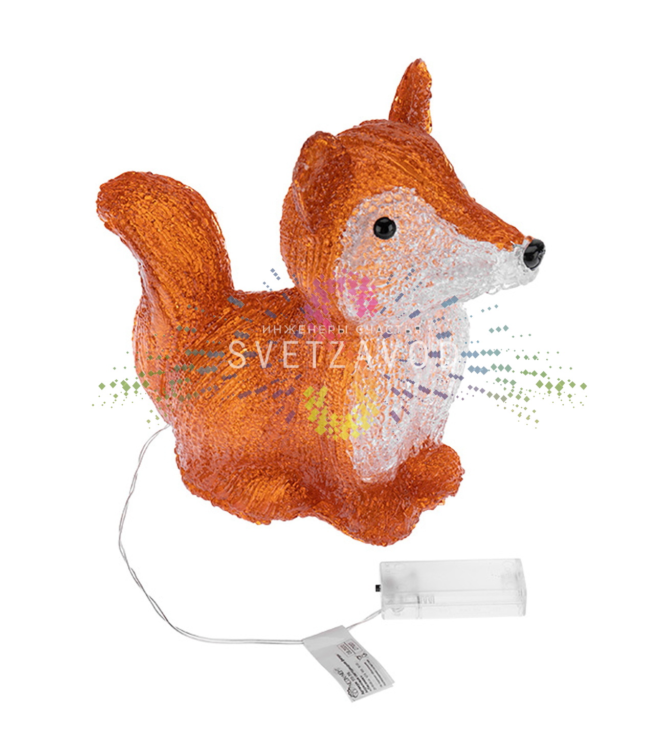 Светодиодные акриловые фигуры - технология, которая уверенными темпами набирает свою популярность на нашем рынке. Спрос на эти красочные изделия постоянно растет, и купить акриловые фигуры теперь намного легче. Акриловая фигура «Лисенок» 28х15х26 см - это объемная 3D светодекоративная фигура с внутренней подсветкой из 30 ярких светодиодов. Такое изделие не останется незамеченным. За счет технологии изготовления и используемых материалов, световая акриловая фигура будет безупречно служить своему владельцу десятилетия.