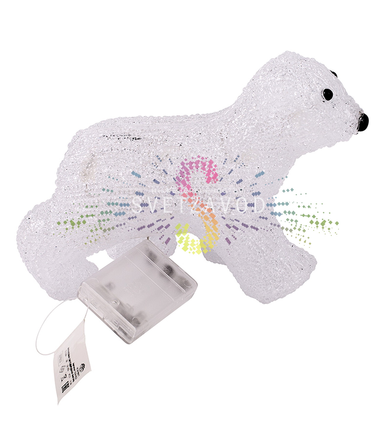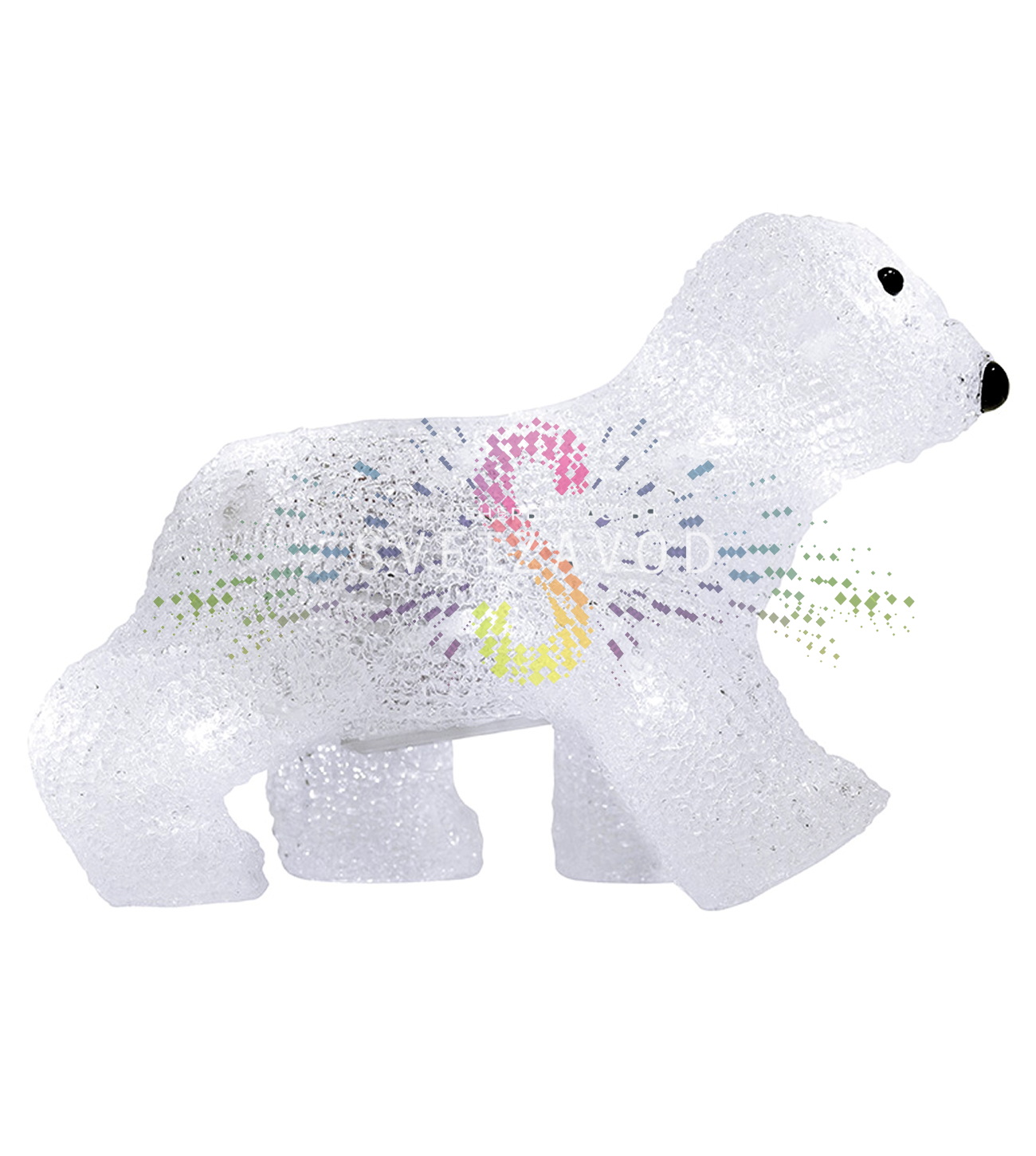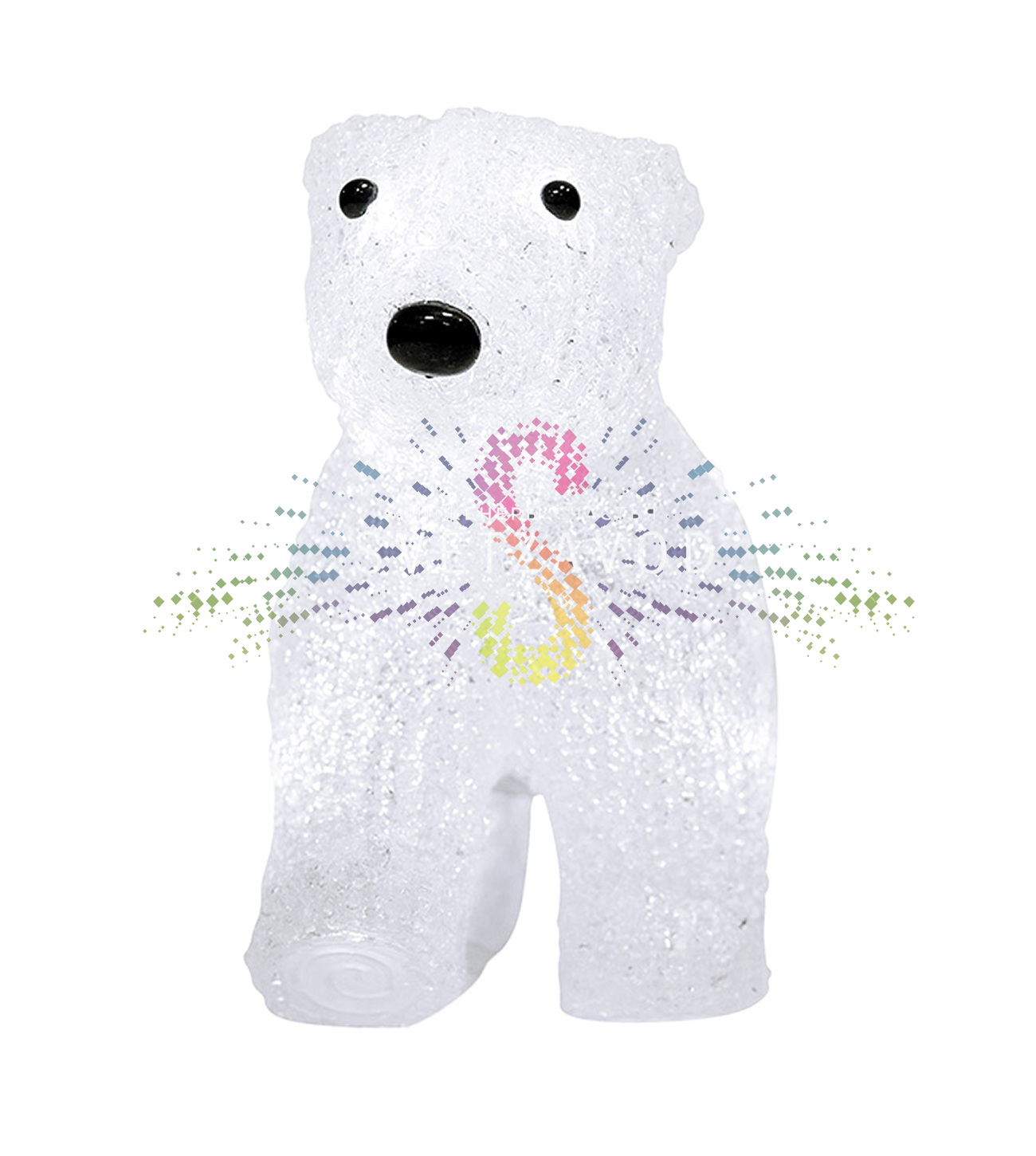 Фигура изготовлена из высококачественного акрила с интегрированными светодиодами, обеспечивающими равномерное и яркое свечение. Компактные размеры 24×11×18 см позволяют легко разместить медвежонка на полке, столе или в составе праздничной композиции.