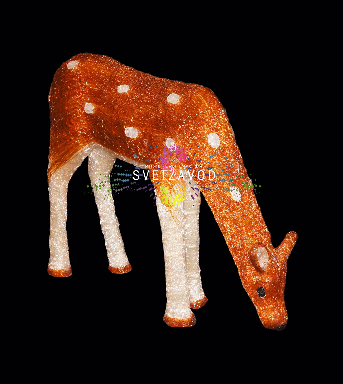 Светодиодные фигуры Семья оленей, 3 фигуры, коричневые – это объемные фигуры из акрила, 24В, защита от влаги и пыли по ГОСТ 14254-96 - IP65 обеспечивает защиту от осадков, их можно эксплуатировать на улице. Работают в режиме постоянного свечения, блок питания с понижающим трансформатором 24В в комплекте.