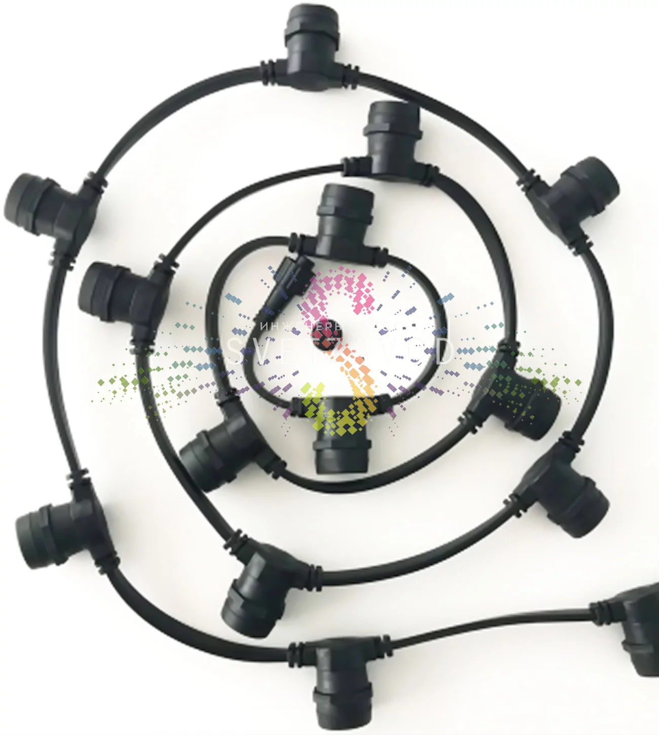 Экономия и долговечность: Используя светодиодные лампы E27, вы получаете энергоэффективное освещение с минимальными счетами за электричество. Прочная конструкция и защита IP65 обеспечивают срок службы гирлянды в несколько сезонов даже в уличных условиях.