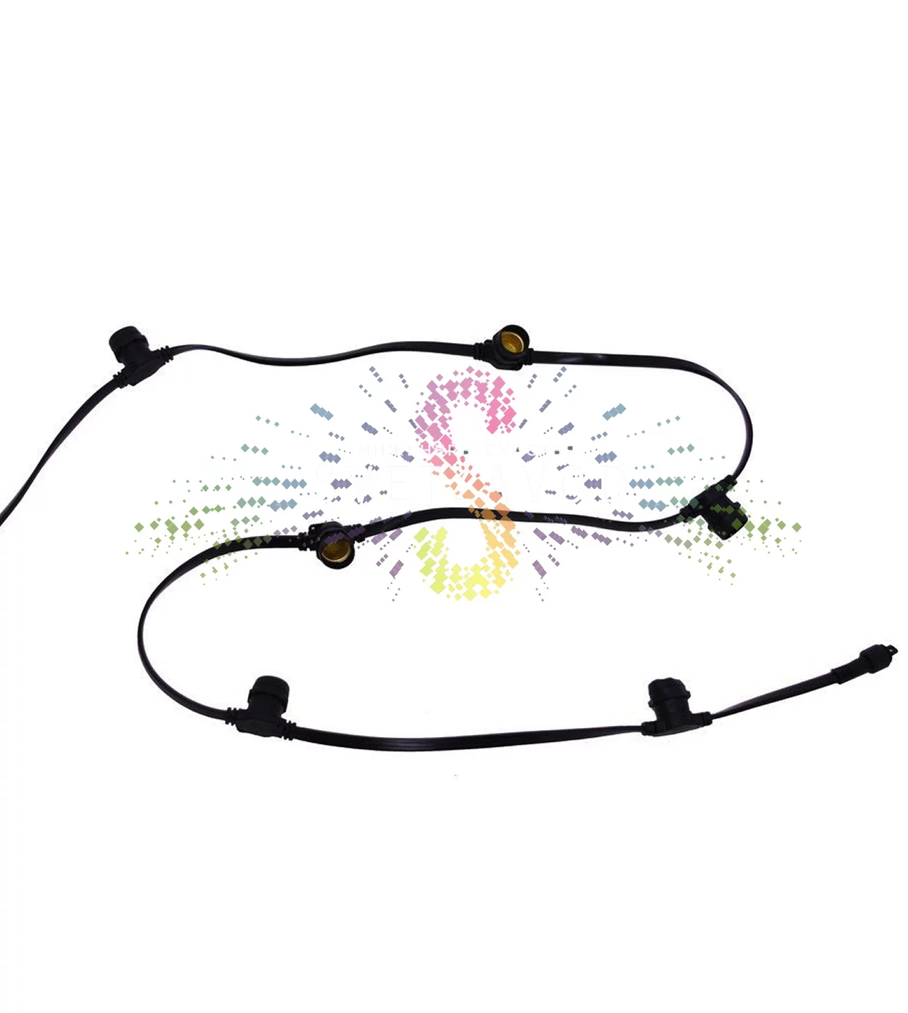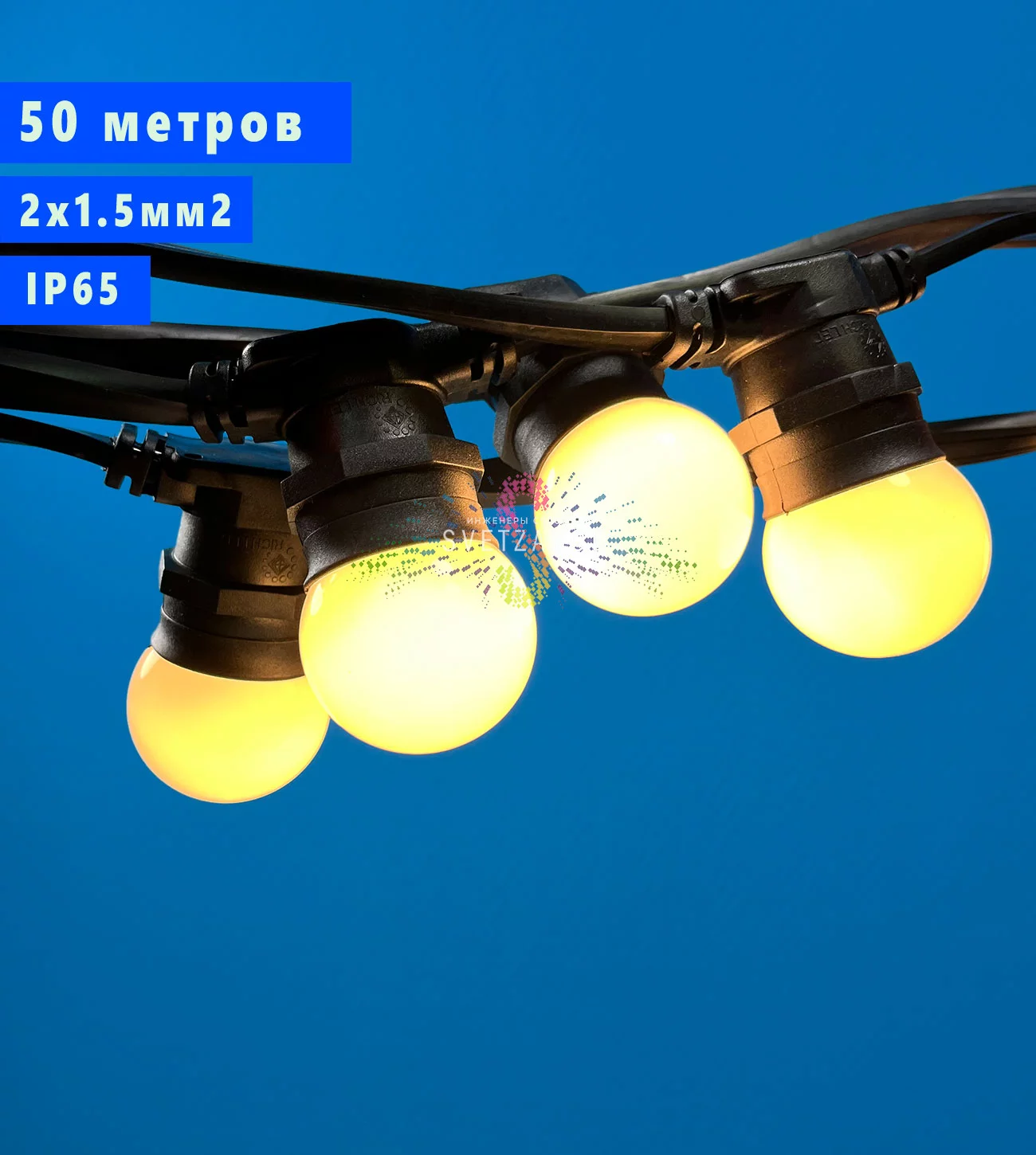 Выбирая эту гирлянду, вы получаете готовый каркас для освещения на годы. Гарантия от производителя — 6 месяцев. Черный цвет провода и фиксинг (крепление) делают монтаж чистым и аккуратным. Заказать уличную гирлянду Е27 с доставкой по Москве и России можно прямо сейчас.