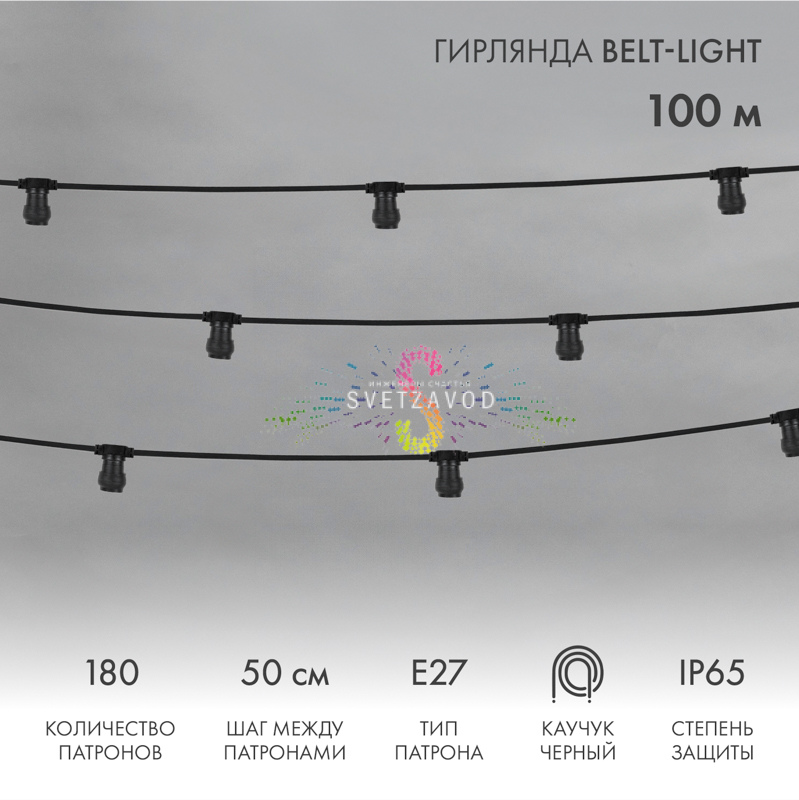 [ELEMENT_CHAIN] => Белт лайт 2W, 220/24В, шаг 50см, E27, черный каучук, фиксинг, 100м, влагозащищенный, Neon-Night