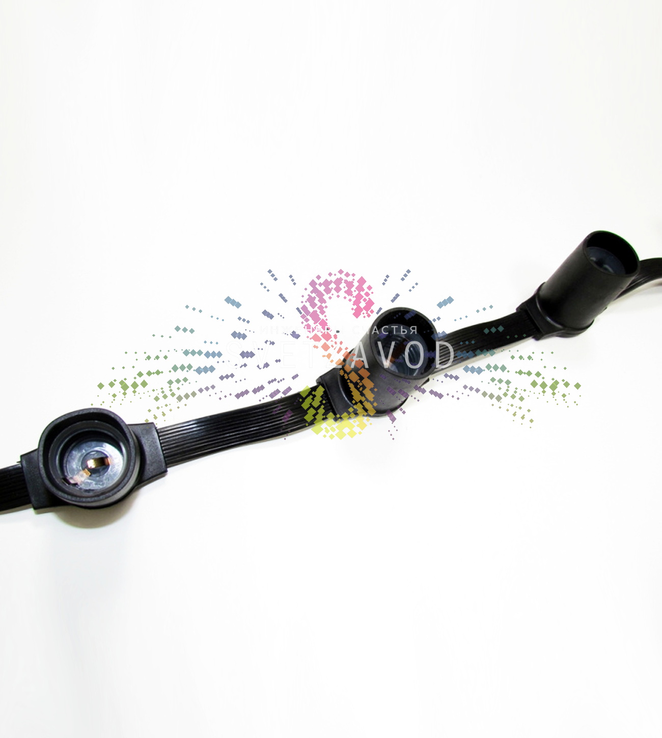 Гирлянда изготовлена из морозостойкого пятижильного каучукового провода с медными токопроводящими жилами. Каждый патрон оснащен уплотнительным кольцом для защиты от влаги.