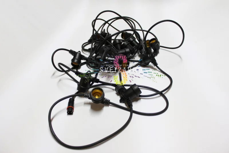 Экономическая выгода: Используйте светодиодные лампы E27. По сравнению с лампами накаливания они потребляют до 80% меньше электроэнергии и служат в десятки раз дольше, что быстро окупает их стоимость. Для длинных линий (от 50 метров) рекомендуется разделять гирлянду на несколько цепей или использовать провод увеличенного сечения для стабильного напряжения на всех лампах.