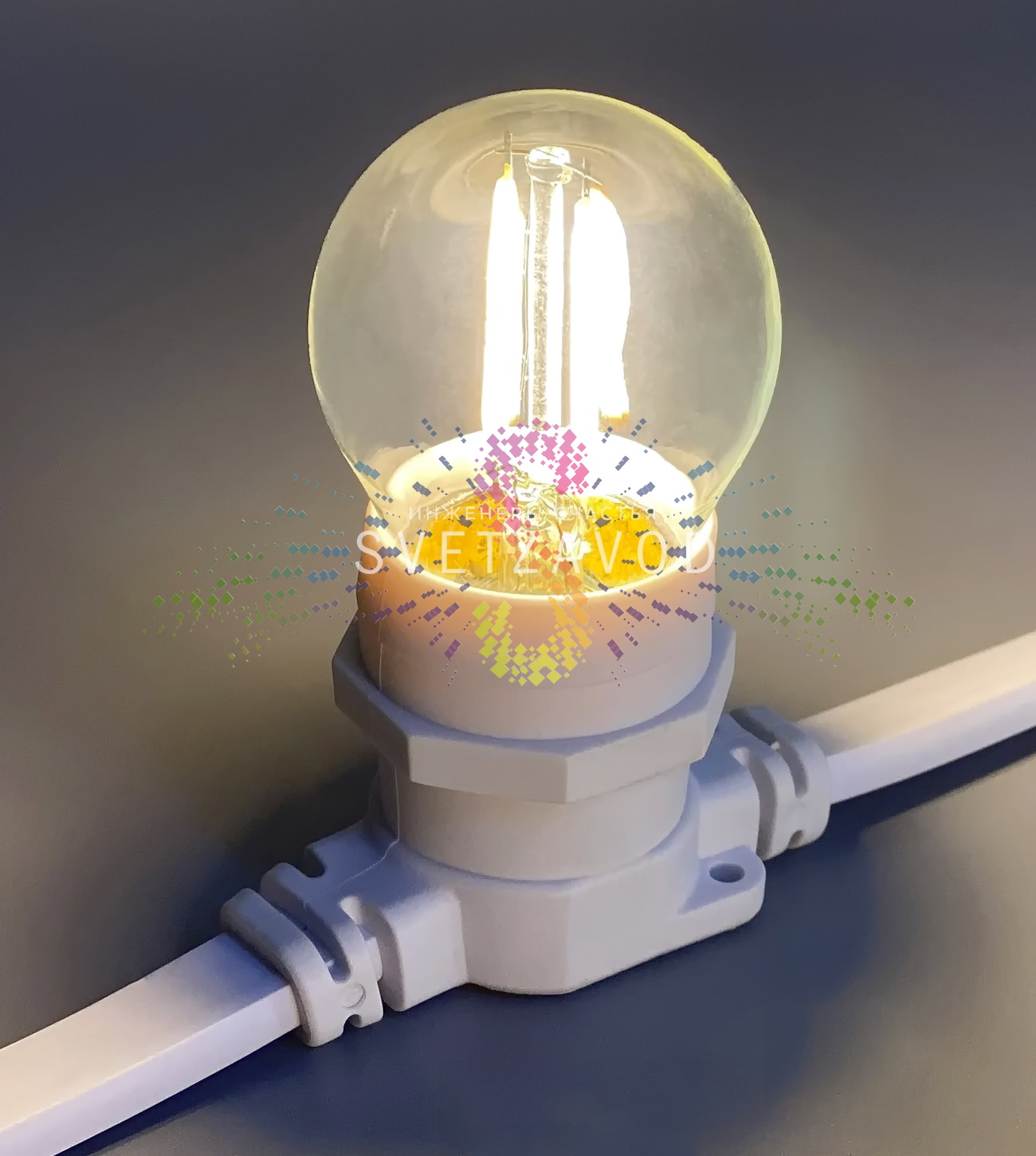 Универсальное применение: Лампа идеально подходит для систем белт-лайт, декоративных гирлянд, ретро-светильников, уличного освещения кафе и ресторанов, оформления витрин и создания атмосферного освещения в интерьерах. Благодаря стандартному цоколю E27 легко устанавливается в любые совместимые светильники.