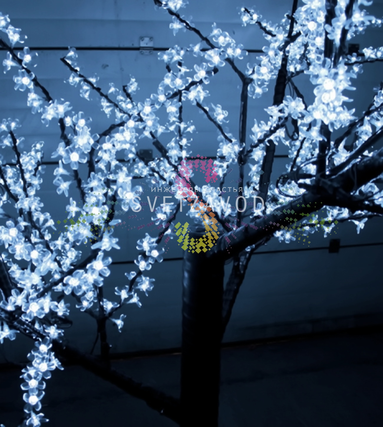 Искусство и технологии: Светодиодное дерево Сакура высотой 2,5 метра с диаметром кроны 2 метра — это уникальный элемент декора, который привносит в ваш интерьер или ландшафт изысканную эстетику японского цветения. Белоснежные ветви с 1728 светодиодами создают эффект вечно цветущего дерева, притягивая восхищенные взгляды и создавая неповторимую атмосферу.