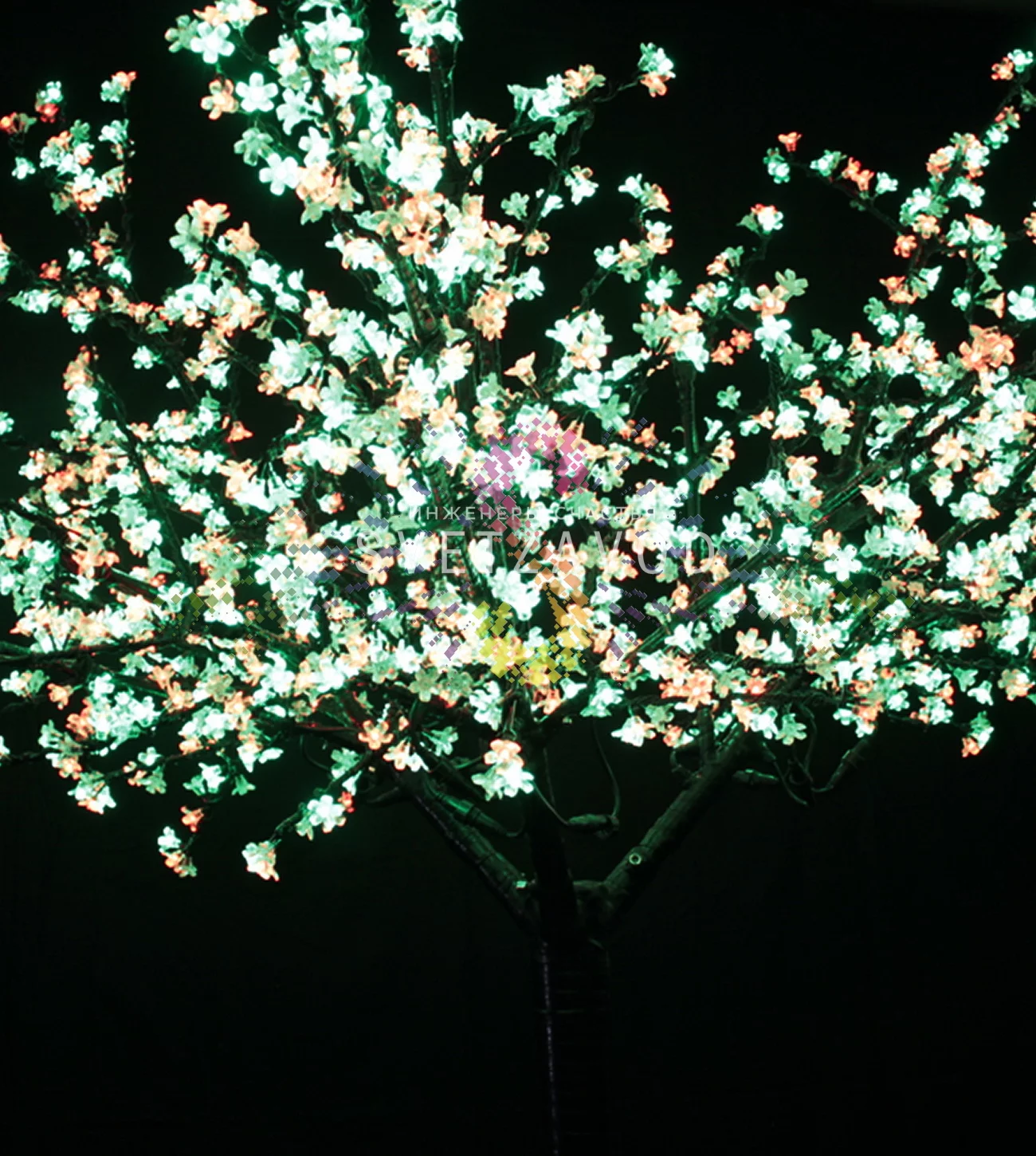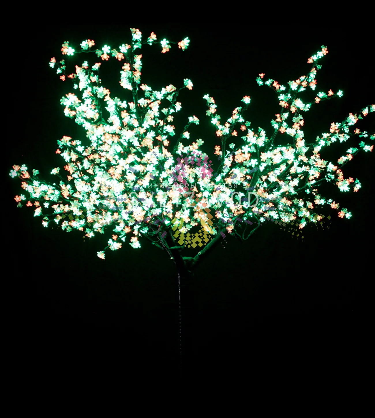 Проблема скучного пространства: Обычное освещение не создает нужной атмосферы, а сезонный декор требует постоянной замены. Решение — светодиодное дерево Сакура. Это готовое, круглогодичное украшение, которое преображает любое место, создавая волшебную атмосферу цветущего сада. Мультицветная динамическая подсветка из 1728 светодиодов плавно меняет оттенки, привлекая внимание и повышая привлекательность вашего пространства.