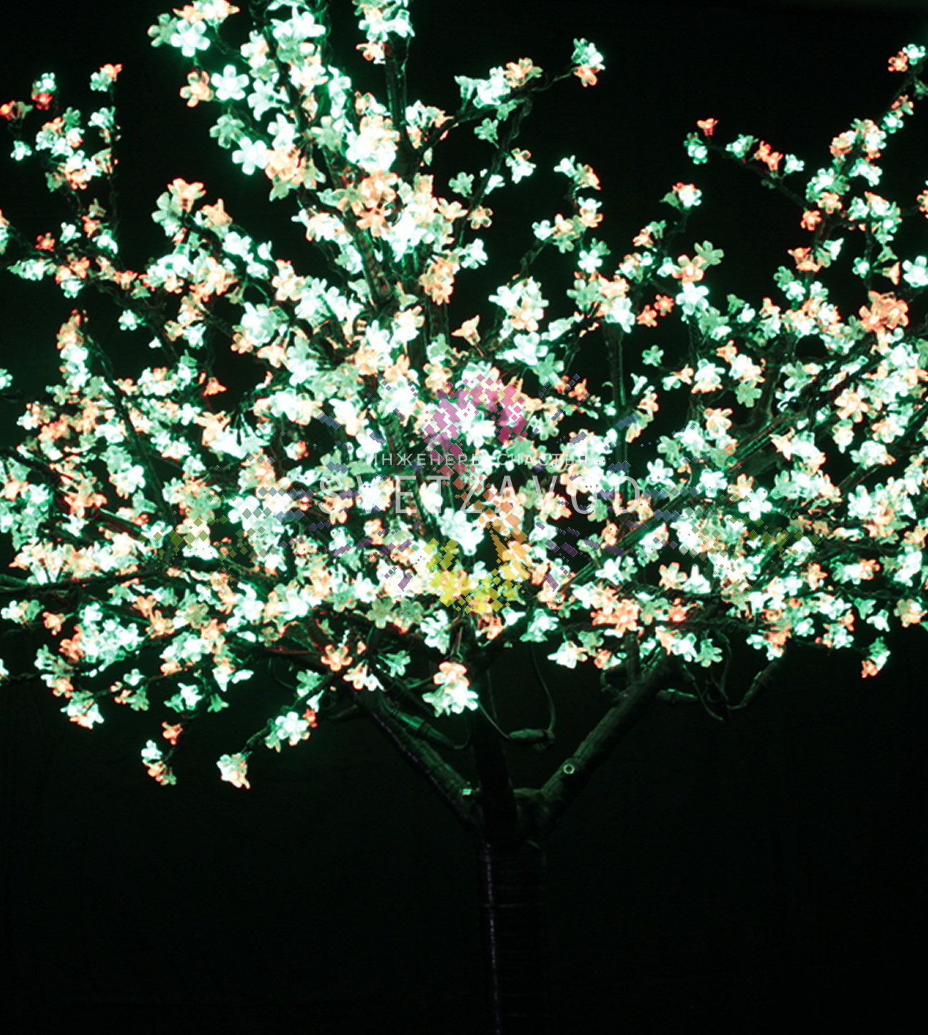 Воплощение восточной эстетики: Светодиодное дерево Сакура высотой 2,5 метра с диаметром кроны 2 метра создает неповторимую атмосферу цветущего сада. Мультицветная динамическая подсветка из 1728 светодиодов плавно меняет оттенки, имитируя волшебное цветение японской вишни. Это готовое решение для премиального оформления.