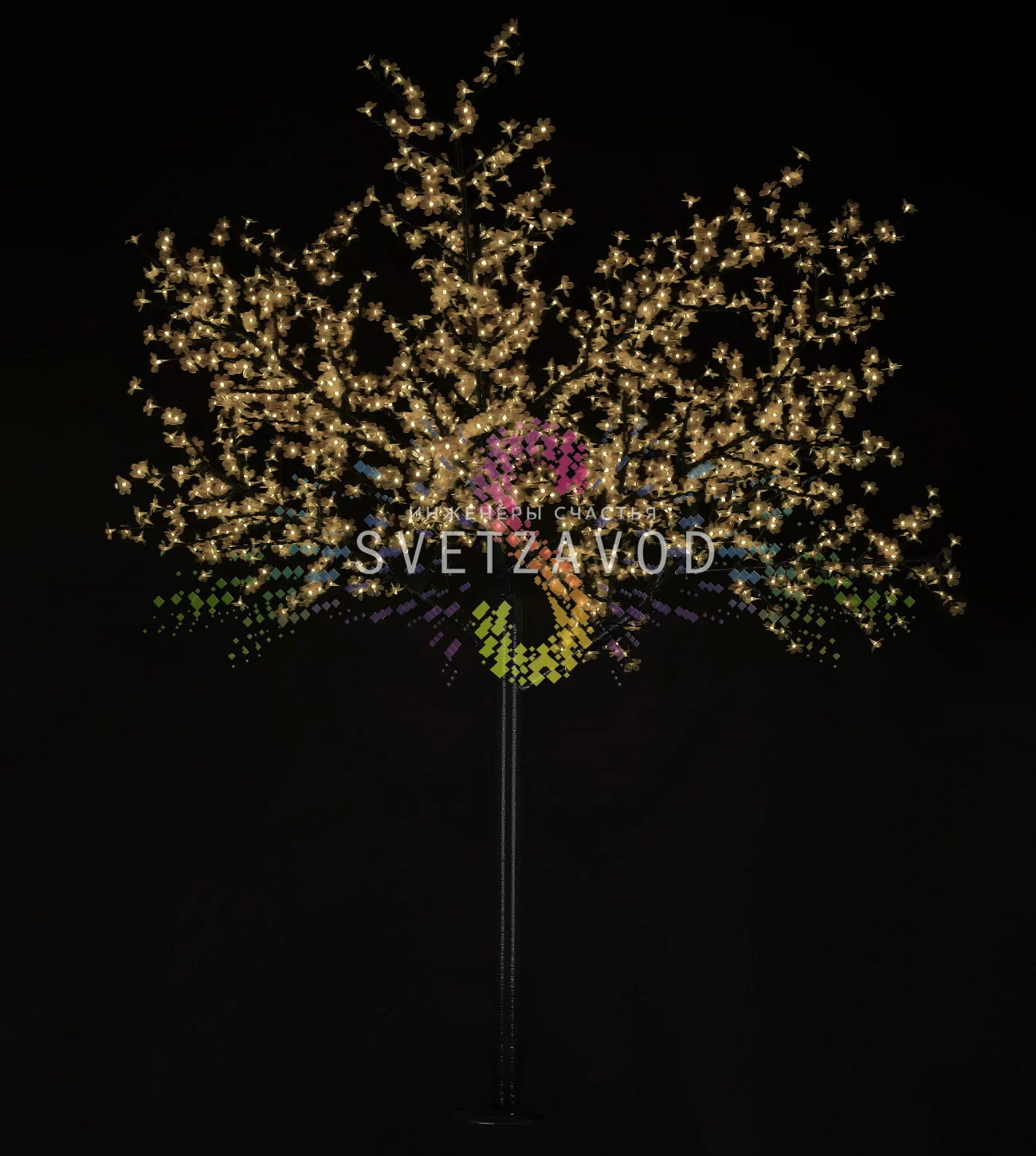 Решение для круглогодичного декора: Настоящая сакура цветет всего несколько недель в году, требуя специфического ухода. Наше светодиодное дерево Сакура предлагает вечное цветение, которое не зависит от сезона и погоды. 1728 светодиодов теплого белого свечения создают иллюзию нежного цветения японской вишни, превращая обычное пространство в место для отдыха и эстетического удовольствия. Это готовое решение для тех, кто ценит красоту, практичность и долговечность.