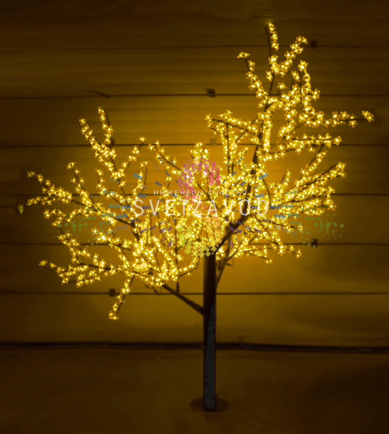 Восточная сказка в вашем дворе: Светодиодное дерево Сакура высотой 2,5 метра с пышной кроной диаметром 2 метра создает неповторимую атмосферу японского сада. 1728 ярких желтых светодиодов имитируют нежное цветение сакуры, привлекая восхищенные взгляды гостей и прохожих. Идеальное решение для ландшафтного дизайна, зон отдыха и коммерческих пространств.