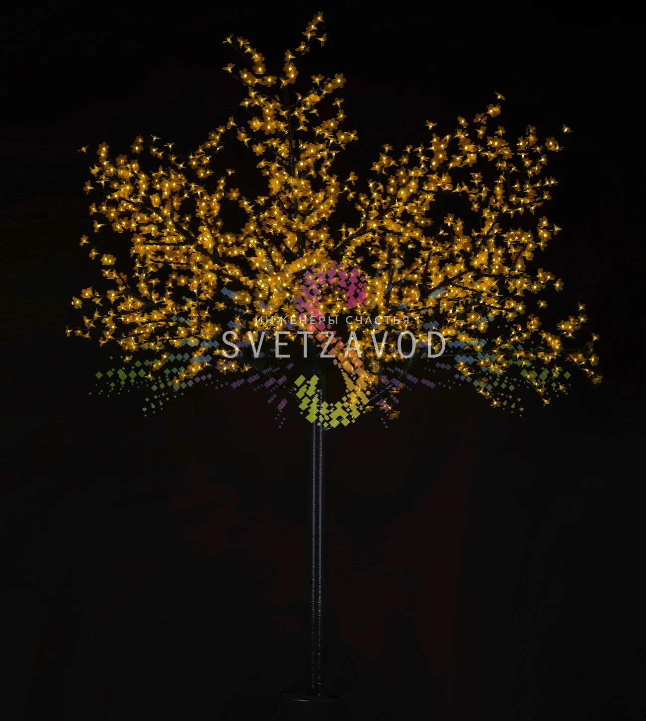 Создайте магию японского сада: Светодиодное дерево Сакура высотой 2,5 метра — это готовое решение для преображения любого пространства. Оно решает задачу создания яркого, долговечного и безопасного акцента в ландшафтном дизайне или интерьере. Желтое свечение 1728 светодиодов создает теплую и уютную атмосферу, а степень защиты IP65 гарантирует бесперебойную работу под открытым небом в любую погоду.