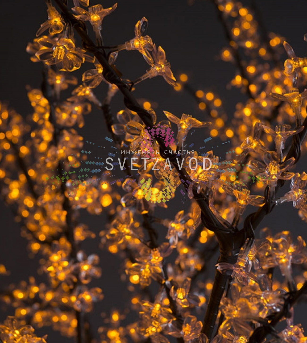 Универсальность размещения: Декоративное дерево одинаково эффектно смотрится в парках, скверах, на территориях ресторанов и кафе, в торговых центрах, офисных холлах и частных владениях. Желтое свечение создает теплую и уютную атмосферу в вечернее время.