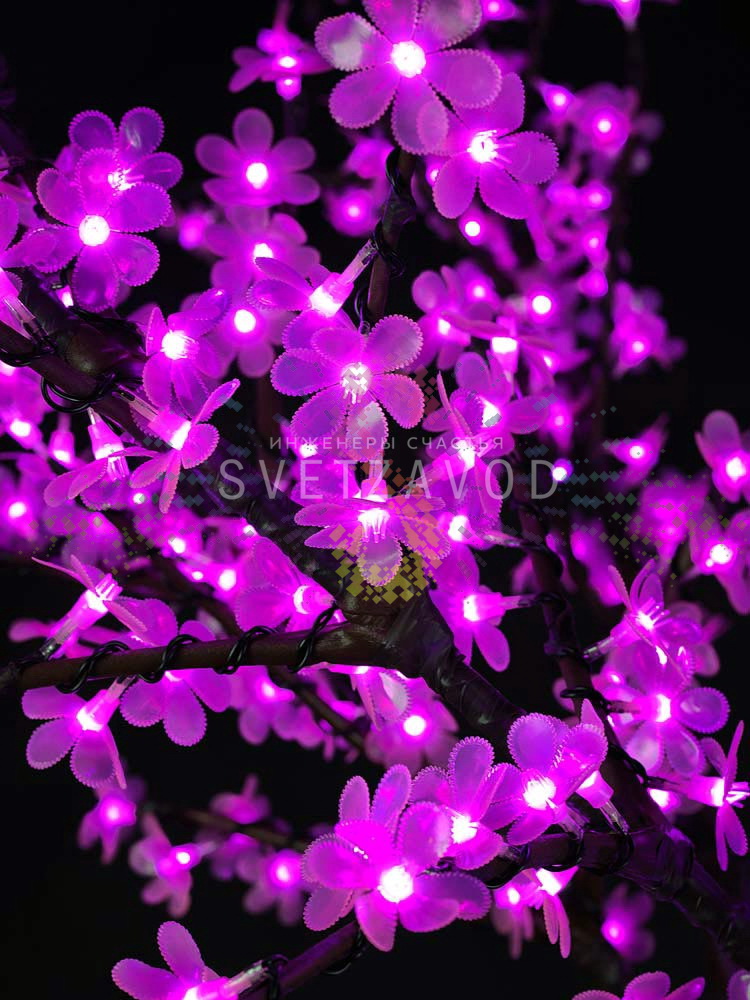 Светодиодные кусты это достаточно новое, очень модное и красивое дополнение к внешнему, либо же наружному интерьеру, или декоративной подсветке вашего здания. Вас обязательно запомнят и вернутся и не только вернутся к вам снова, но и посоветуют своим друзьям. Такое светодиодное украшение состоит из больших и маленьких веточек, которые можно гнуть и менять их расположение по своему усмотрению. Благодаря высокотехнологичным качествам светодиодов, такие деревья без проблем работают в круглосуточном режиме как на улице, так и внутри помещений. Они пожаробезопасны и крайне просты в монтаже и установке. Срок службы дерева составляет порядка 5 лет, а выгорание одного, или нескольких светодиодов не скажется на общей работе остальных и на внешнем виде всего дерева. Отличается от предыдущей серии более изящными, обновленными лепестками.
