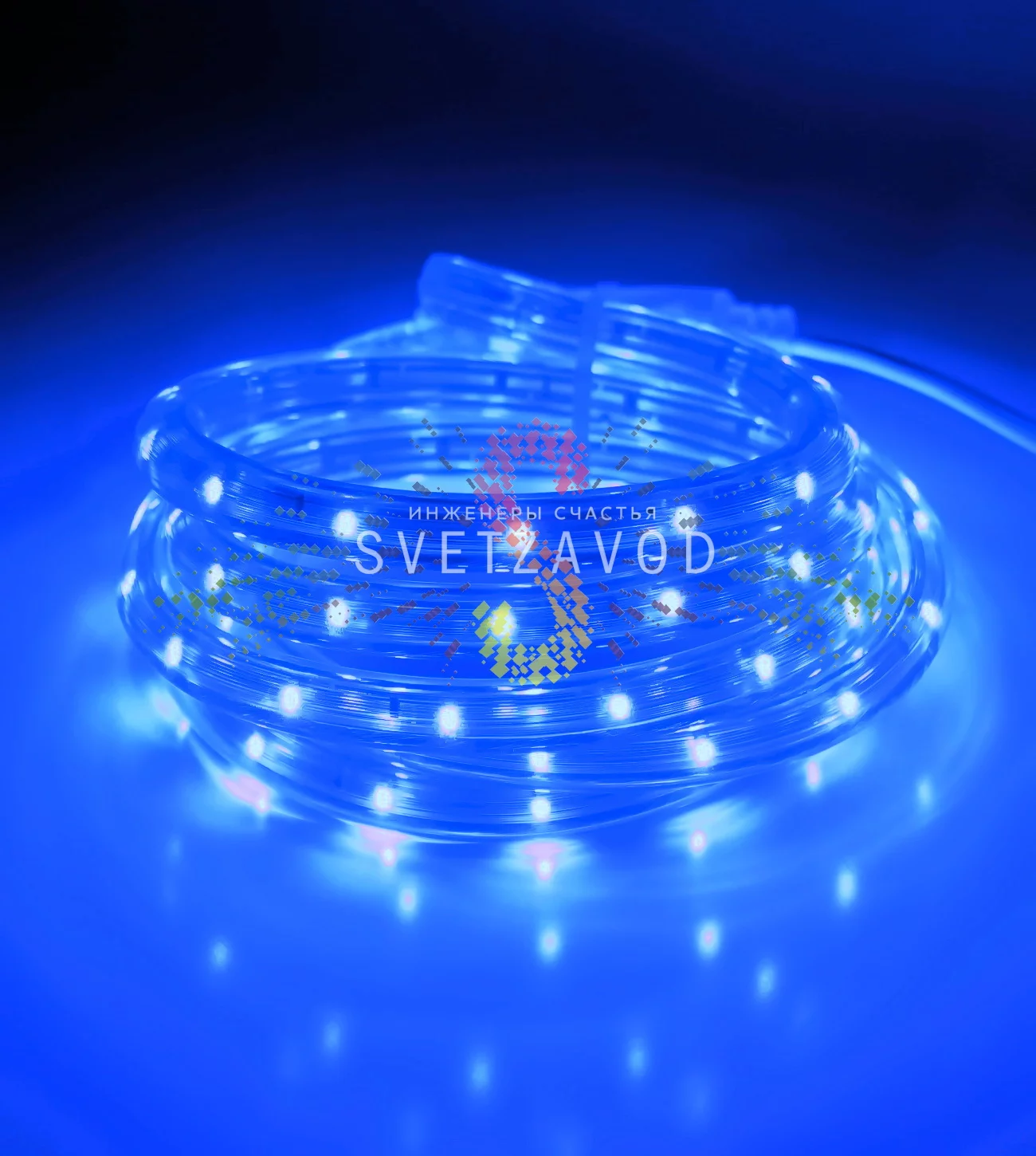 Гибкий световой шнур диаметром 13 мм в прозрачной оплетке с синими светодиодами внутри обеспечивает чистый и насыщенный свет. Продается целыми бухтами по 100 метров, что оптимально для масштабных работ по фасадному и архитектурному освещению.