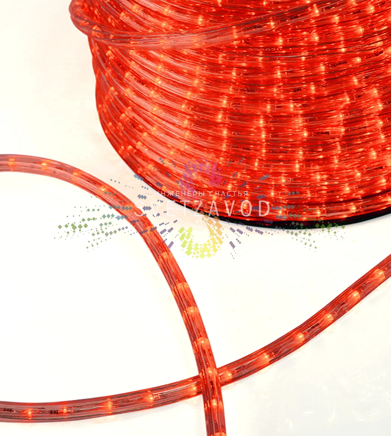 Гибкая ПВХ-трубка диаметром 13 мм надежно защищает 36 ярких светодиодов на каждом метре, обеспечивая равномерное красное свечение с оригинальным эффектом FLASH, когда каждый 6-й диод мерцает белым цветом.