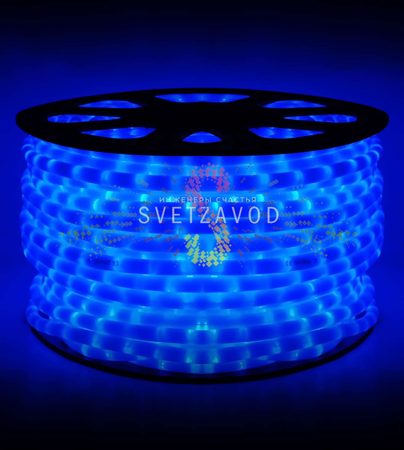 Дюралайт имеет двухжильную конструкцию с плотностью 36 светодиодов на метр, что гарантирует равномерное и яркое свечение синего цвета. Шаг резки составляет 1 метр, что упрощает монтаж и минимизирует отходы.