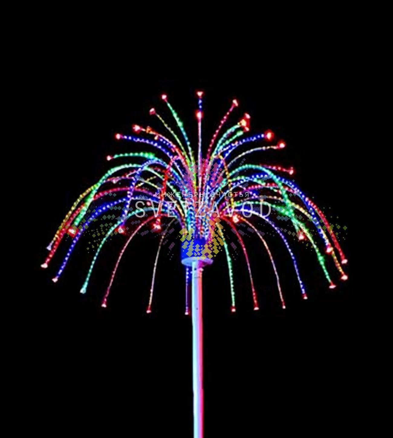Этот электрофейерверк станет центральным элементом праздничного оформления. Установите его на регулируемую опору высотой 3-7 метров для максимального визуального эффекта.