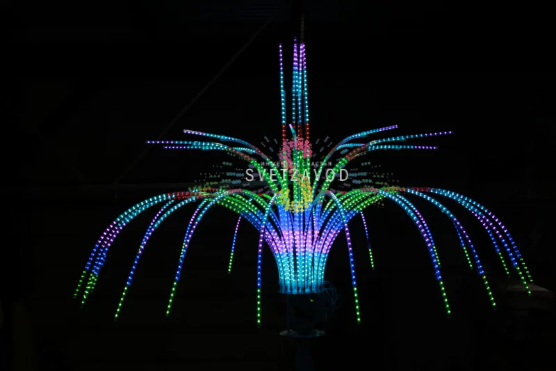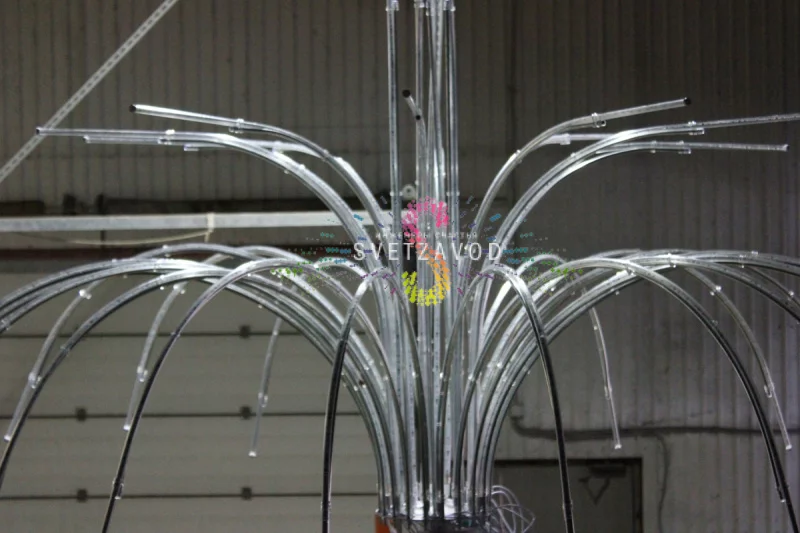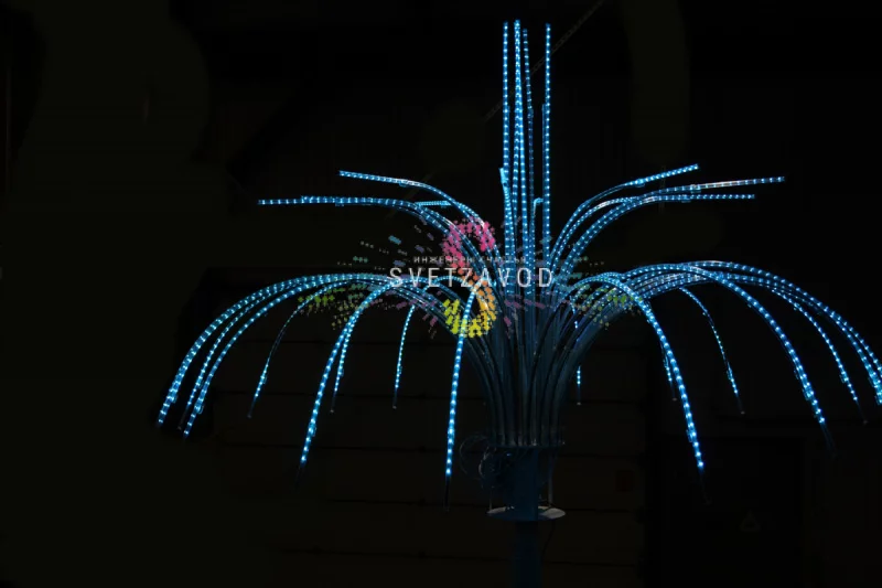Этот световой фонтан поставляется в полной комплектации, готовой к монтажу. В основе — прочный металлический каркас с пластиковыми лучами, на которых установлены яркие светодиоды SMD5050 со сроком службы 40 000 часов. Вся электроника защищена от влаги, пыли и перепадов напряжения.