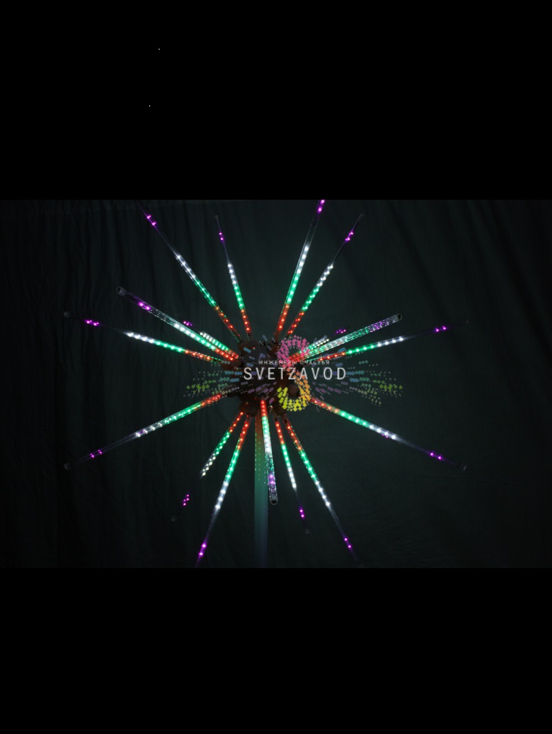 Светодиодный салют построен на жестком металлическом каркасе с пластиковыми лучами.