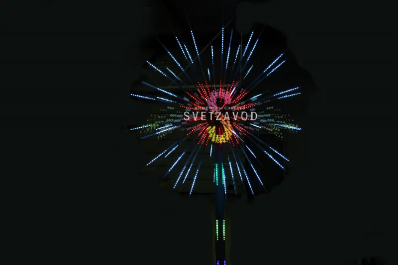 Установите светодиодный салют диаметром 3 метра и получите управляемую цветовую феерию из 52 лучей. 12 программ контроллера позволяют менять эффекты, создавая уникальное зрелище для каждого мероприятия.