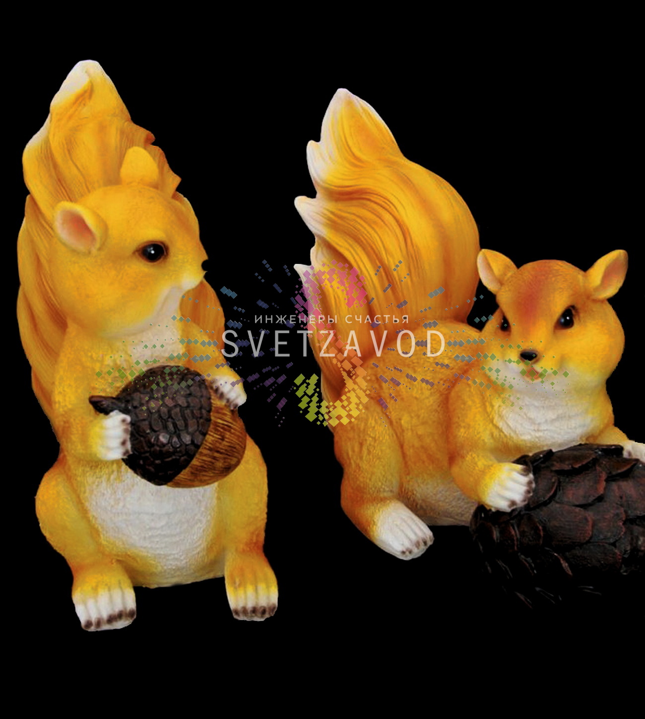 Белка с желудем высотой 50 см – это объемная фигура из стекловолокна с внутренней подсветкой. Можно создать новую красивую композицию, поставив вместе нескольких фигур.