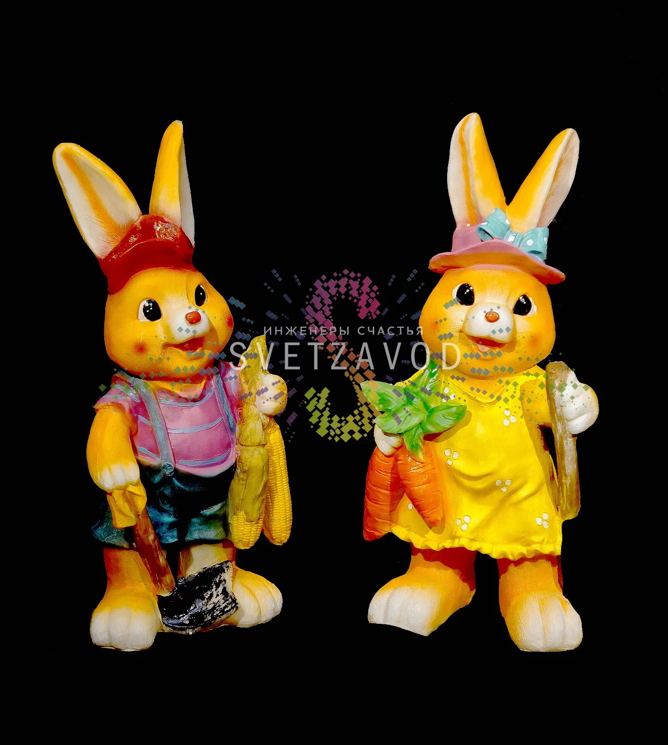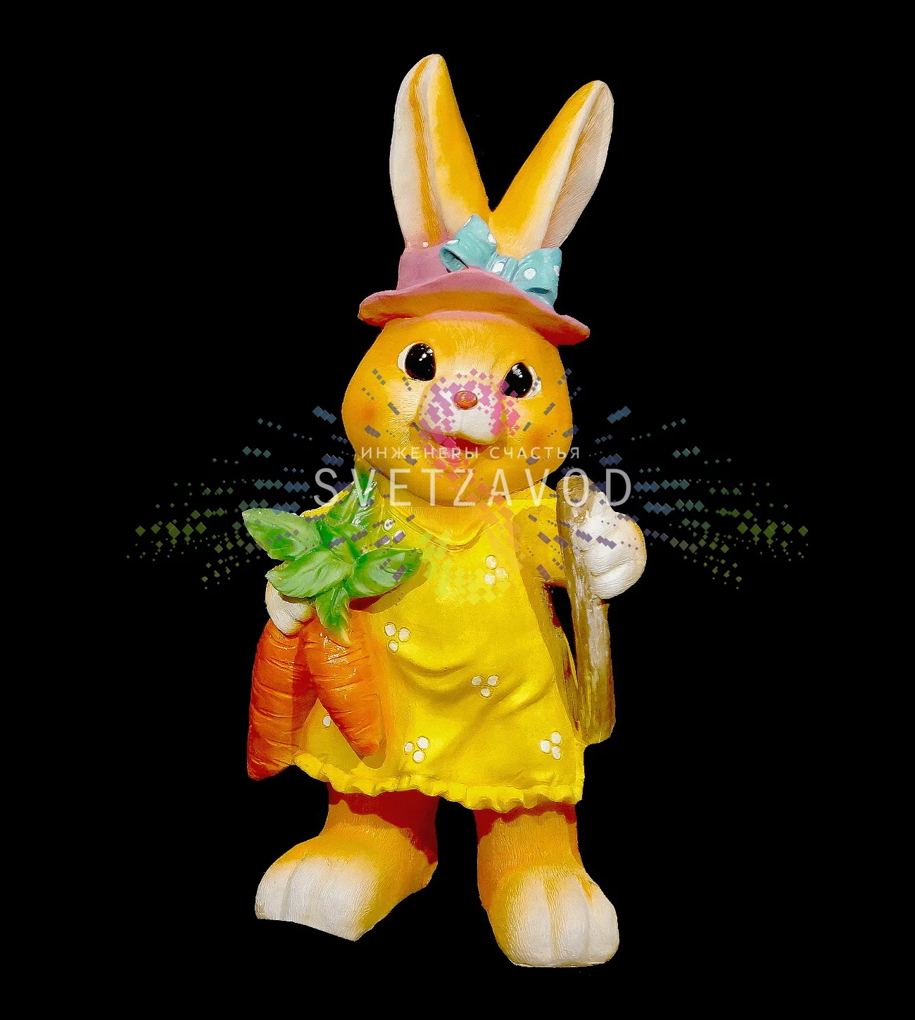 Решение: Готовая светодиодная фигура из стекловолокна «Заяц с морковкой». Это яркий 3D-акцент для сада, двора или интерьера, который не боится дождя и мороза. В комплекте уже есть трансформатор для безопасного подключения. Идеальный вариант, если вы ищете, где купить фигуры из стекловолокна для создания уникального пространства без лишних хлопот.