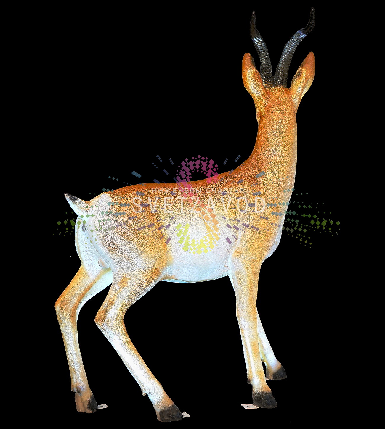 Композиция состоит из трех фигур антилоп разного размера (125/107/69 см), что позволяет создавать гармоничные групповые инсталляции. Каждая фигура изготовлена с высочайшим вниманием к деталям и анатомической точностью.