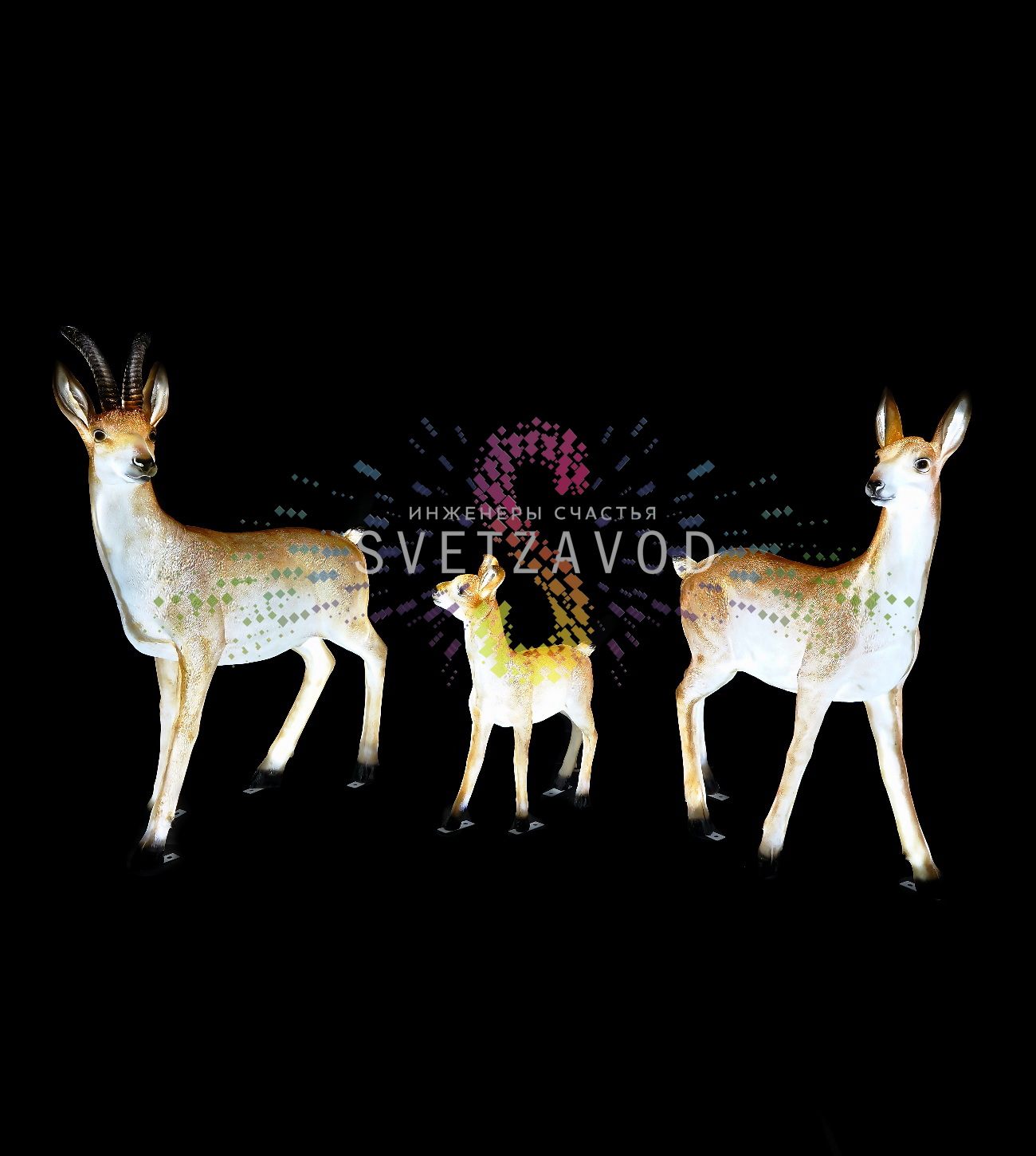 Современное решение для ландшафтного дизайна: Светодиодные фигуры из стекловолокна "Семья антилоп" представляют собой уникальное сочетание художественного мастерства и передовых технологий. Эти объемные 3D-фигуры с внутренней подсветкой создают неповторимую атмосферу и привлекают внимание в любое время суток.