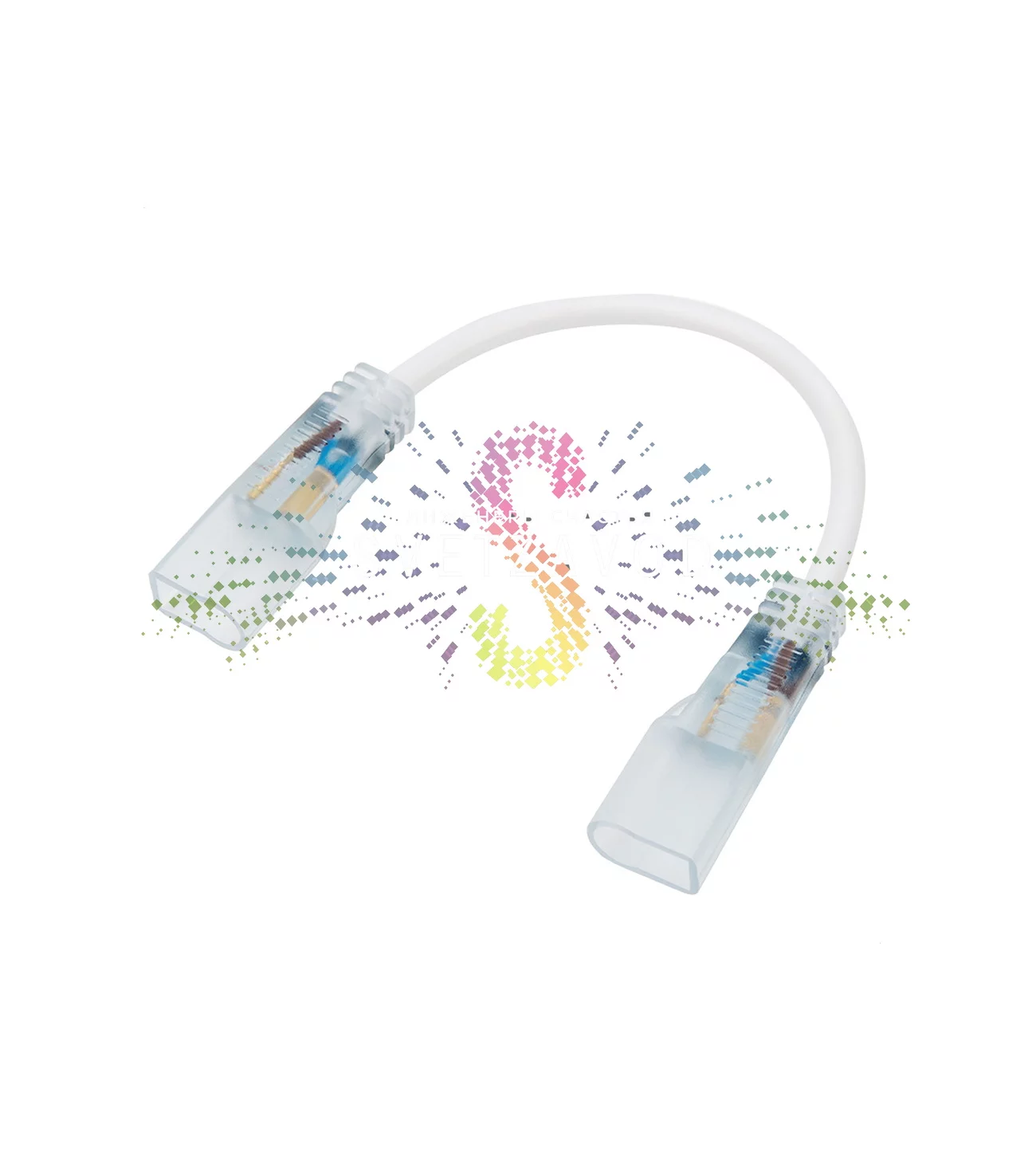 Коннектор представляет собой герметичный корпус с двумя встроенными соединительными иглами. Эти иглы аккуратно вставляются в токопроводящие жилы на срезе неонового шнура, обеспечивая идеальный контакт без потерь мощности. Корпус надежно фиксирует место стыка, защищая его от влаги, пыли и механических повреждений.