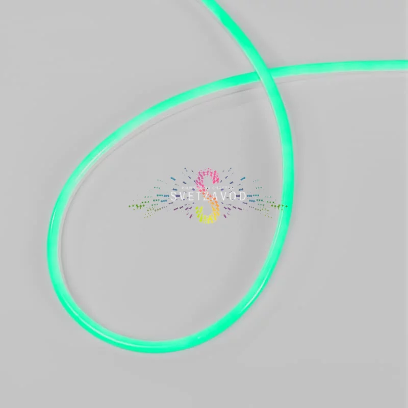 Этот неоновый шнур с прямоугольным сечением и матовой оплеткой дает ровное, насыщенное зеленое свечение. Он поставляется готовыми отрезками по 100 метров, что удобно для масштабных проектов.