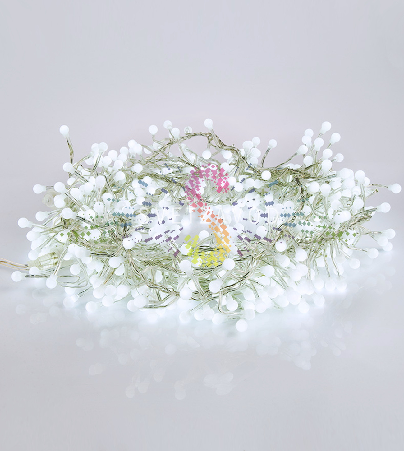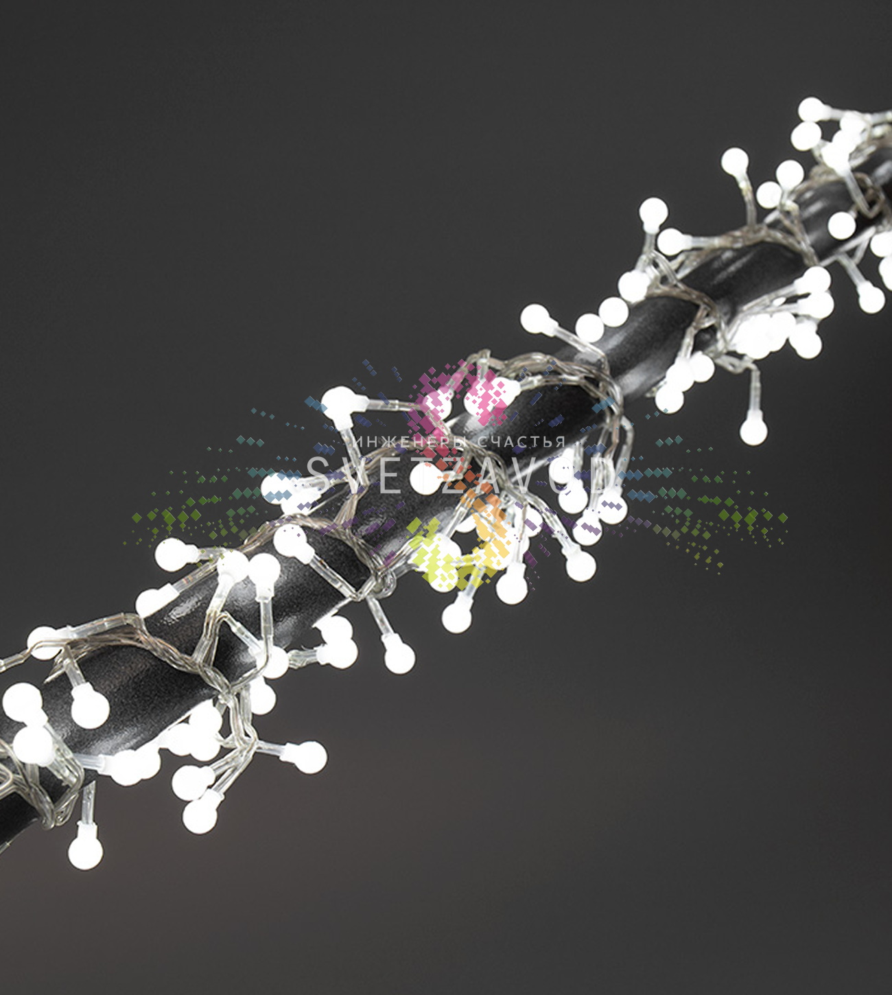 Гирлянда изготовлена из прозрачного ПВХ материала белого цвета, что обеспечивает эстетичный внешний вид как в выключенном, так и в работающем состоянии.