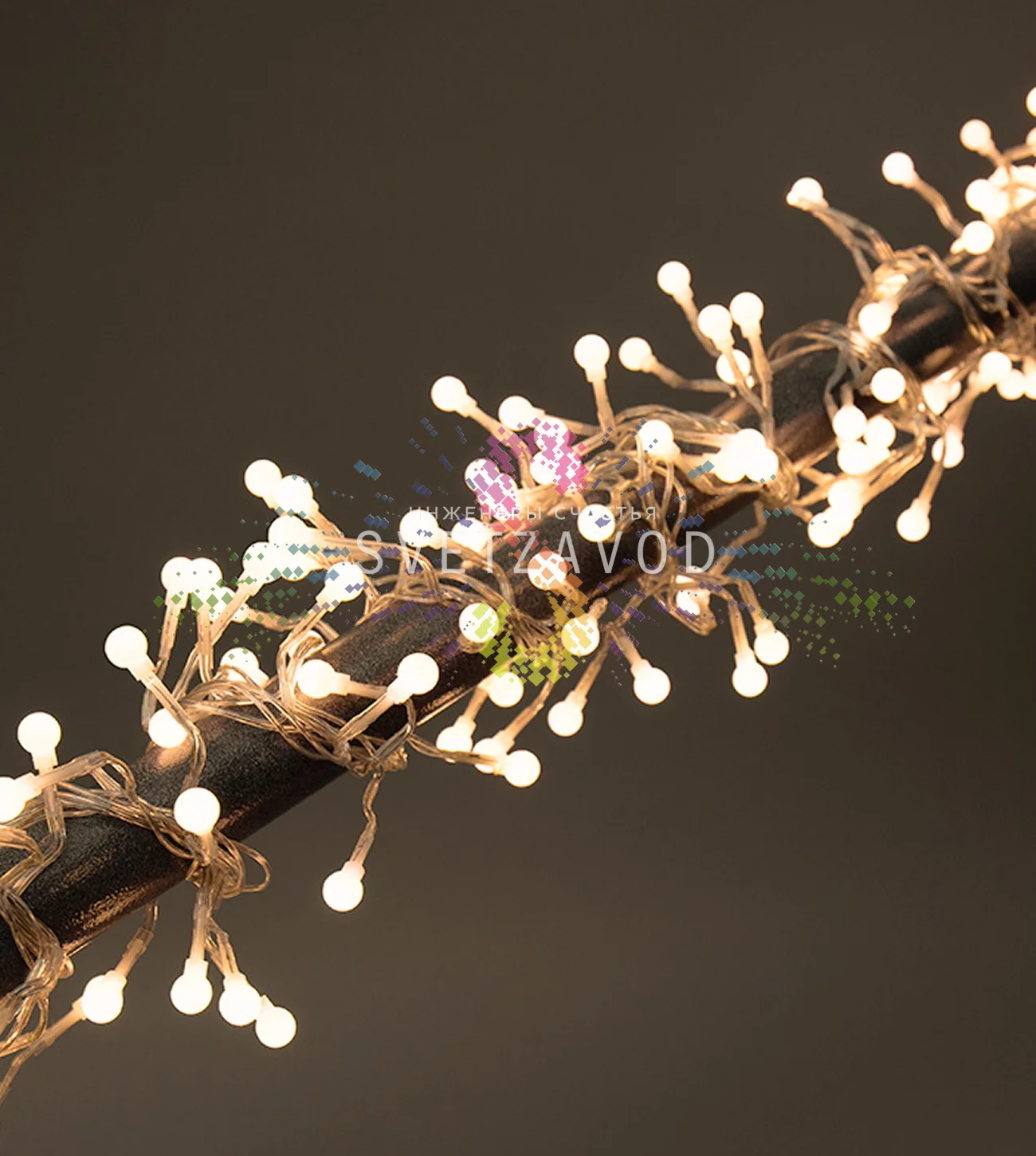 Общий диаметр "пушистой" части гирлянды — около 9 см, что создает эффектный объемный световой шнур. Все соединения надежно изолированы.
