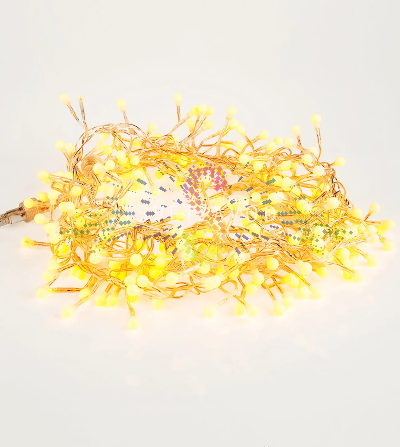 Желтый цвет свечения и прозрачный ПВХ провод делают гирлянду визуально легкой и теплой, а встроенный контроллер с 8 программами позволяет выбрать подходящий динамичный или статичный режим работы.
