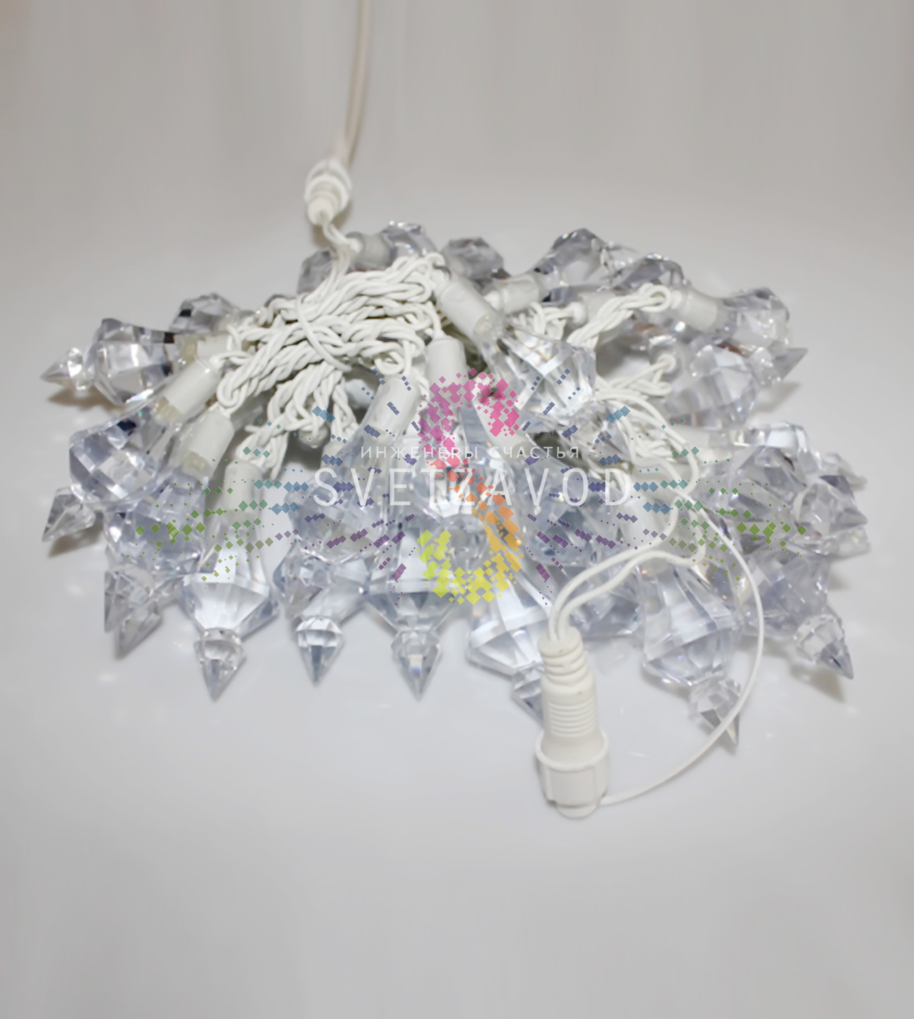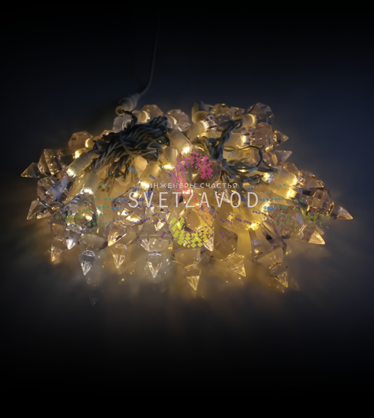 Элегантное освещение для любого пространства: Светодиодная гирлянда "Кристаллы" длиной 4 метра с 40 светодиодами создает мягкое тепло-белое свечение, идеальное для декоративного оформления интерьеров, витрин, ресторанов и мероприятий. Белый ПВХ-кабель обеспечивает эстетичный внешний вид и долговечность.