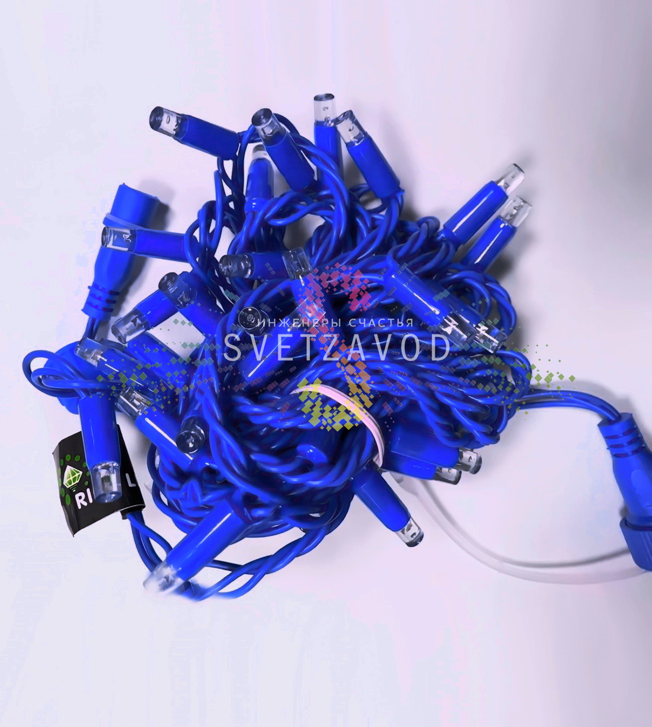 Надежность и долговечность: Корпус светильников выполнен из прочного синего ПВХ, обеспечивающего механическую защиту и устойчивость к внешним воздействиям. Степень защиты IP65 гарантирует полную защиту от пыли и водяных струй, что позволяет безопасно использовать гирлянду на улице в любую погоду.