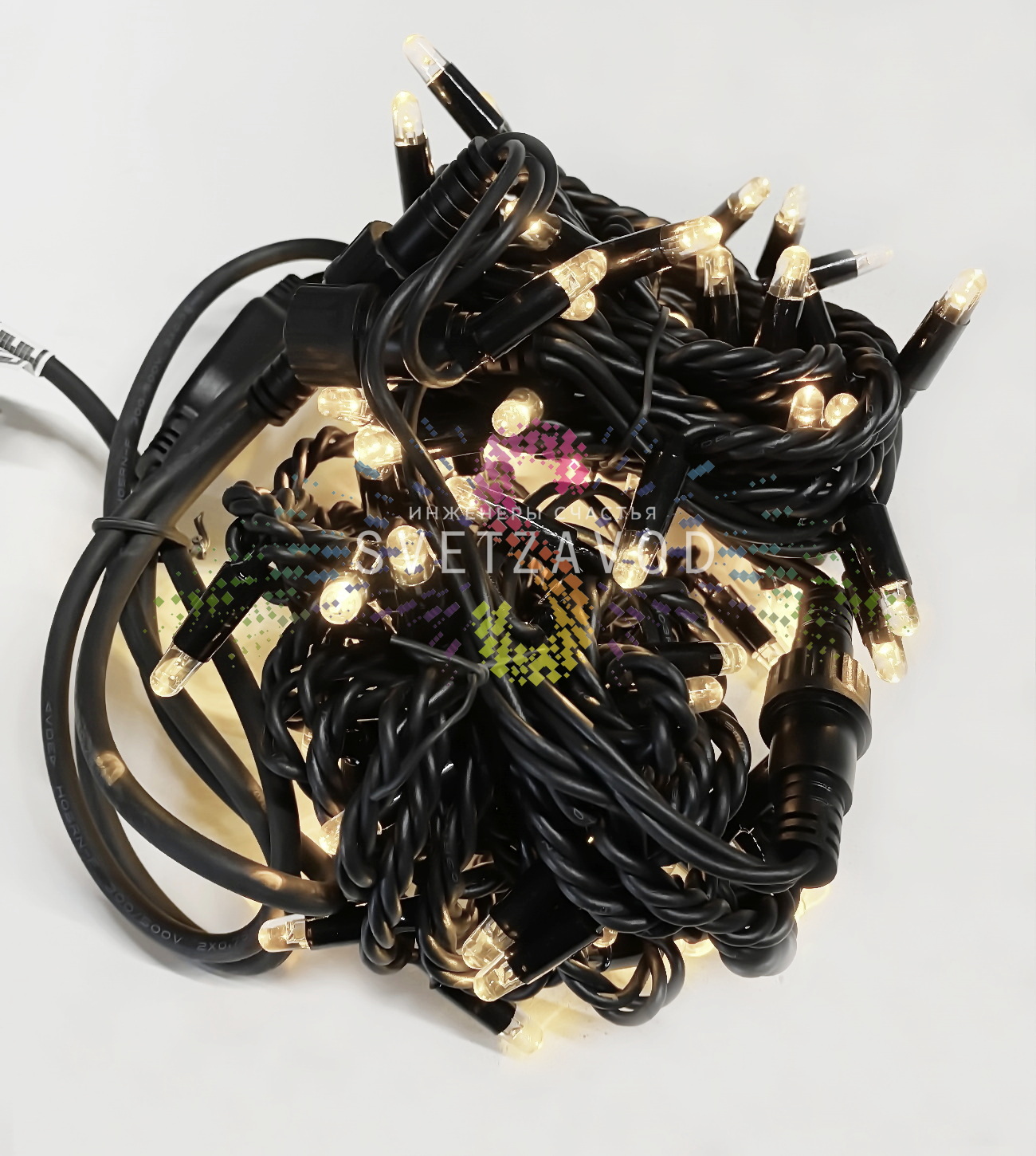 Конструкция гирлянды продумана до мелочей: расстояние между светодиодами 10 см обеспечивает равномерное свечение, а черный матовый кабель сливается с окружающим пространством, не привлекая лишнего внимания.