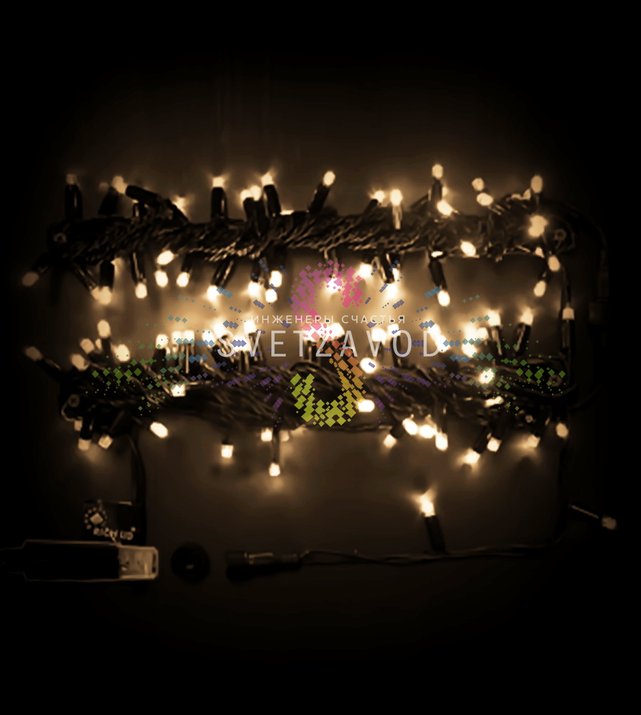 Универсальность и практичность: Благодаря степени защиты IP65 гирлянда может использоваться как внутри помещений, так и на улице, устойчива к атмосферным воздействиям. Черный ПВХ-кабель малозаметен в любое время суток, акцентируя внимание именно на световом эффекте. Теплое белое свечение создает уютную и комфортную атмосферу.