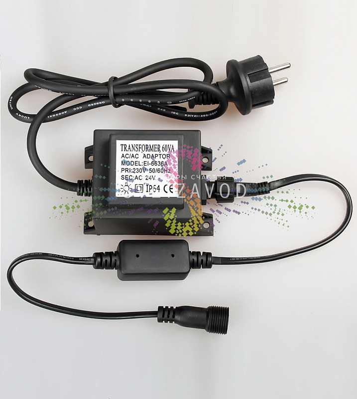 Это универсальное решение для питания низковольтных гирлянд типа Стринг Лайт фиксинг 24В. Один блок мощностью 60Вт позволяет запитать несколько гирлянд, что упрощает монтаж и снижает затраты.