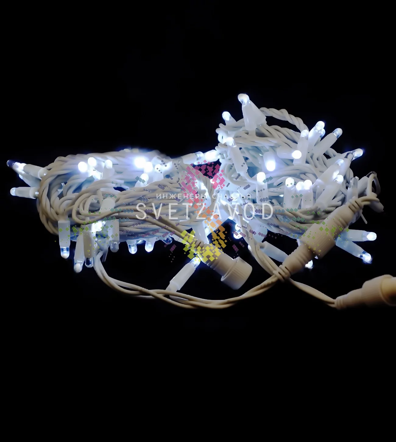 Важные условия эксплуатации: Для работы гирлянды необходим внешний блок питания (трансформатор) 220В/24В соответствующей мощности. Максимальное количество гирлянд, соединяемых последовательно, — 8 штук. Не превышайте допустимую нагрузку на источник питания.
