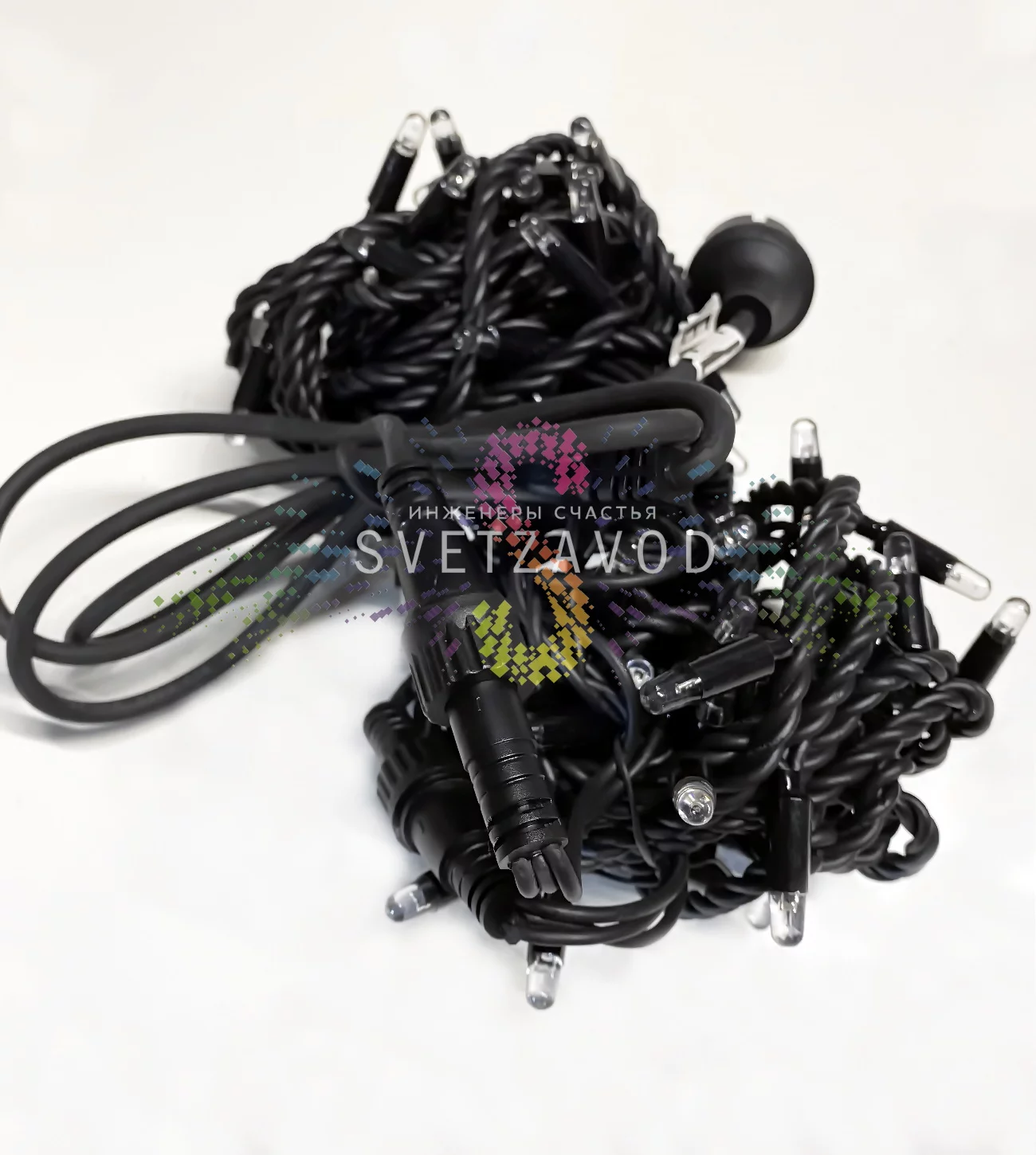 Инженерный подход: Конструкция гирлянды разработана для интенсивной эксплуатации. Черный каучуковый кабель устойчив к ультрафиолету, перепадам температур от -40°C до +50°C и механическим воздействиям. Герметичные соединения и защитные колпачки на каждом светодиоде обеспечивают полную влагозащиту по стандарту IP65.