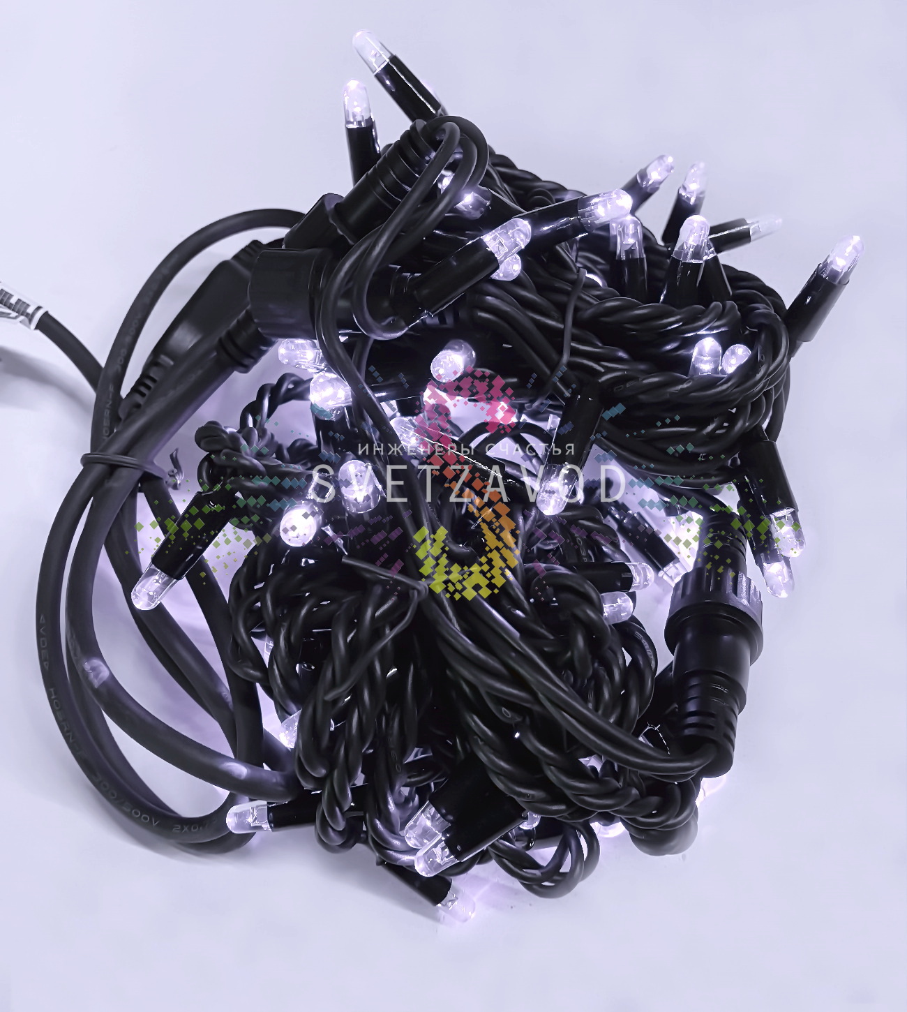 Надежность и долговечность: Конструкция гирлянды включает двойную изоляцию провода и защитные колпачки на каждом светодиоде, что исключает попадание влаги и механические повреждения. Медные жилы повышенного сечения обеспечивают стабильное напряжение по всей длине гирлянды без просадок яркости.