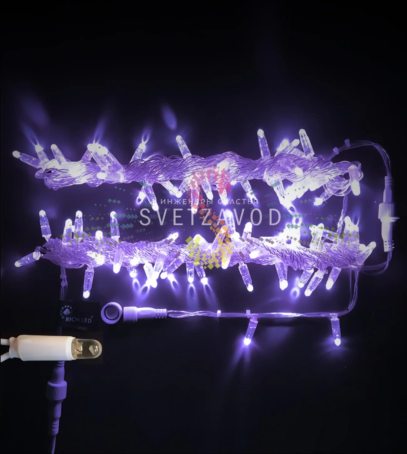 Этот стринг лайт — универсальный инструмент для декоратора. Эффект мерцания и глубокий фиолетовый цвет создают динамичную, загадочную или праздничную атмосферу в зависимости от задачи.