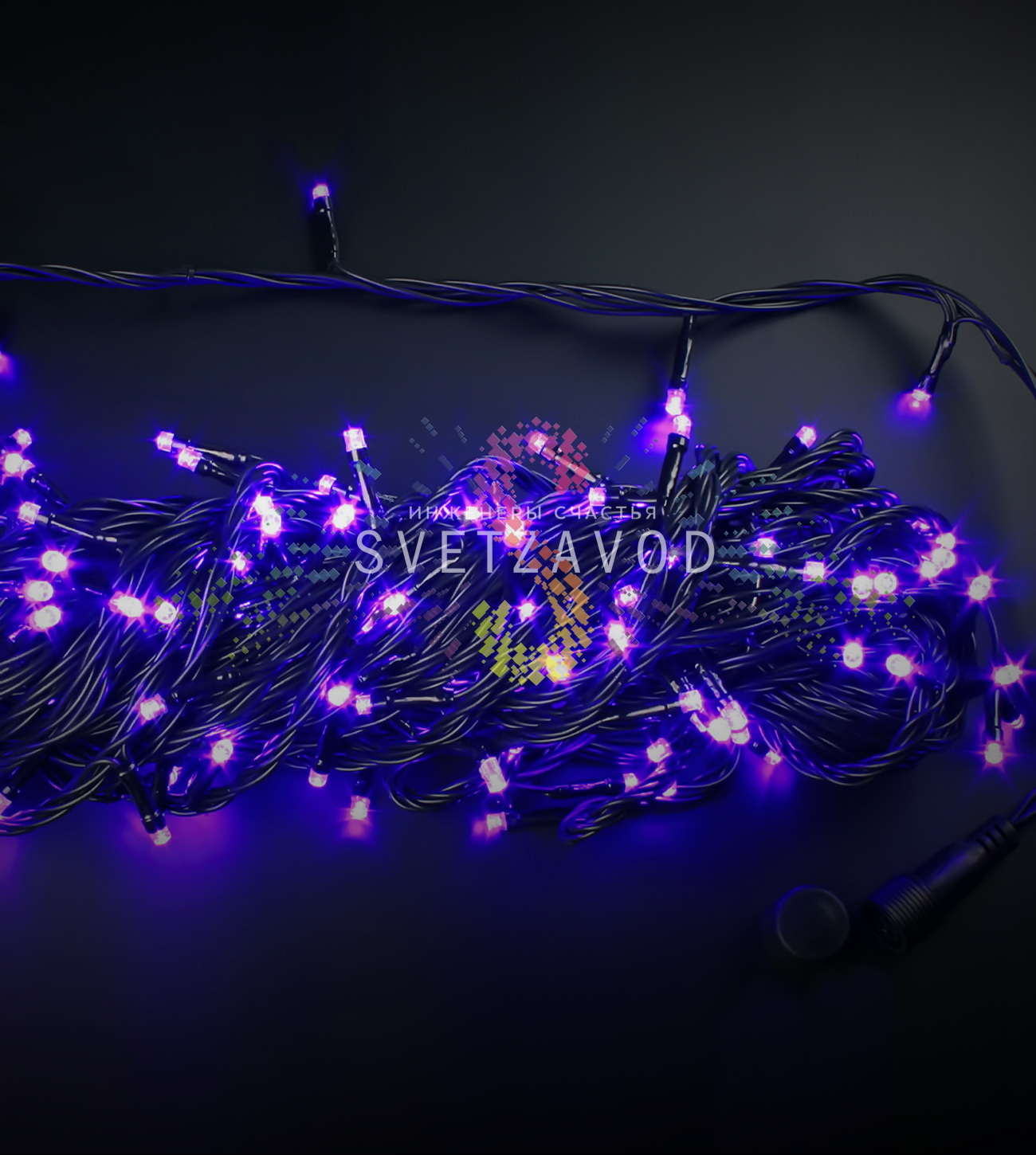 Эта гирлянда длиной 20 метров с фиолетовыми LED-лампами предназначена для создания праздничного настроения как в интерьере, так и на улице.