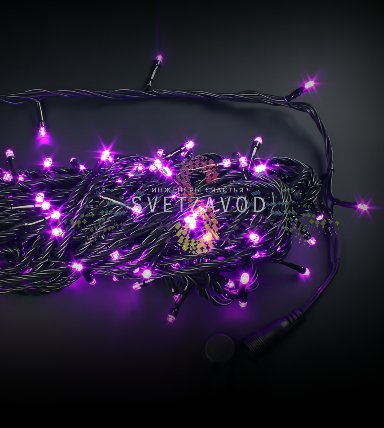 Гирлянда работает от сети 220В и оснащена контроллером с 8 программами для создания различных световых сценариев.