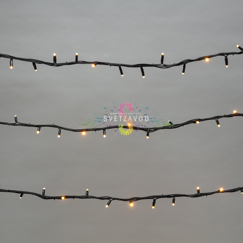 Надежность и долговечность: Конструкция гирлянды включает общий провод с короткими ответвлениями, на концах которых расположены яркие светодиоды. Благодаря последовательному расположению элементов достигается равномерное свечение по всей длине изделия.