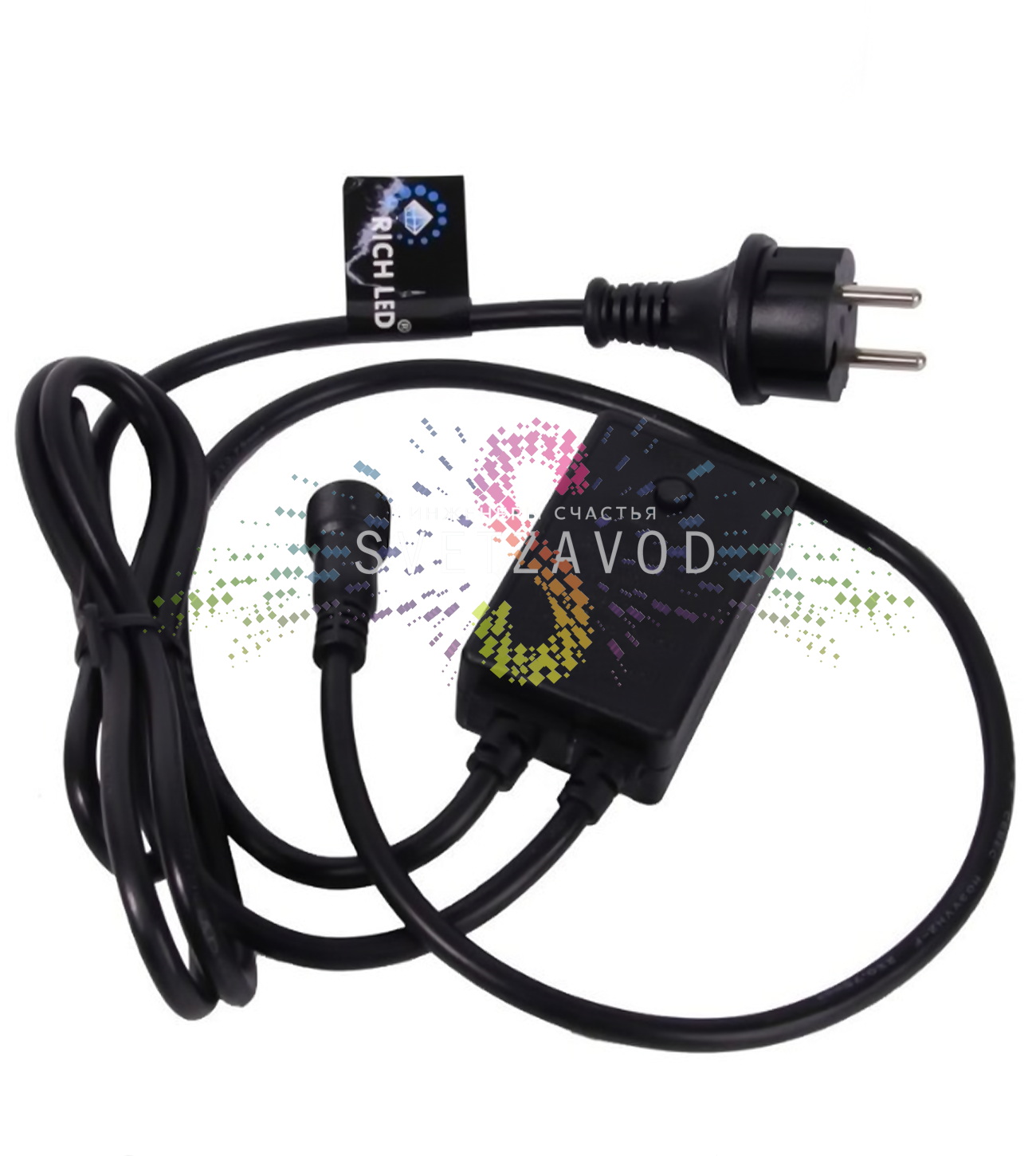 Интеллектуальный контроллер Rich Led: Многофункциональный контроллер с памятью для гирлянд Твинкл Лайт. Подключайте до 5 гирлянд последовательно, создавая единую осветительную систему длиной до 100 метров. Устройство запоминает последний выбранный режим работы при включении.